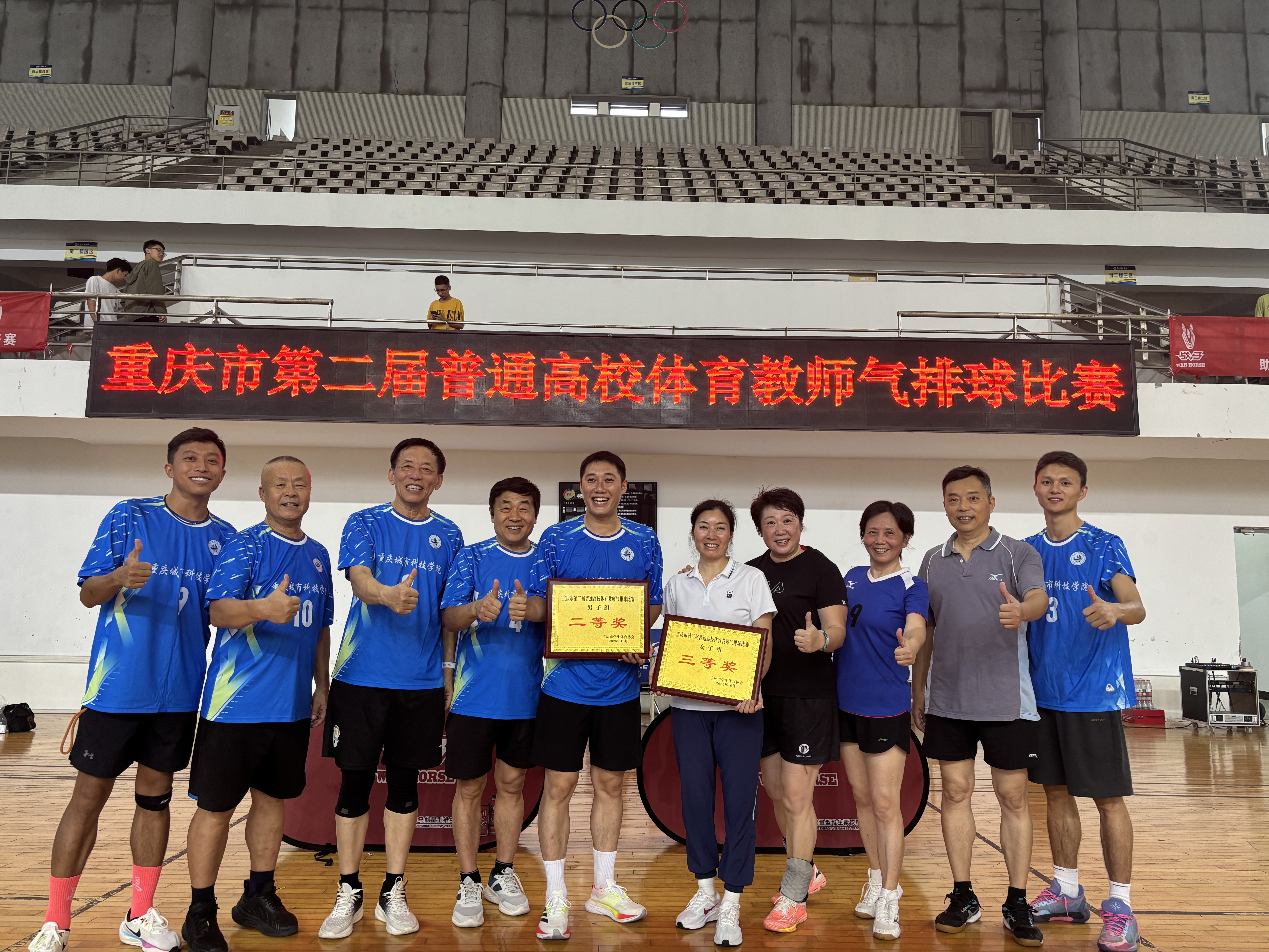 赛场挥洒汗水,团结拼搏展风采,体育与大健康学院教职工用气排球划出优美弧线,诠释了体育精神与党建力量的完美融合。 2025年10月12日,重庆市第二届普通高校教职工气排球比赛圆满落幕。体育与大健康学院教职工排球队在胡红院长、邓文全常务副院长及陈志军院长助理的带领下,凭借出色的团队协作与精湛的技术水平,从众多高校代表队中脱颖而出。最终荣获男子组二等奖、女子组三等奖的优异成绩,充分展示了教职工团结拼搏、奋勇争先的精神风貌。 党政引领:精心组织备赛 在体育与大健康学院,党建引领不再是抽象的概念,而是化为了具体的行动与成果。体育与大健康学院党总支深入贯彻落实党的二十大精神,以“体教融合”为核心,充分发挥党建引领作用,为教职工队伍的建设注入强大动力。 比赛筹备阶段,体育与大健康学院领导班子高度重视此次参赛工作。胡红院长、邓文全常务副院长多次组织动员会议,强调“以赛促教、以赛促学”的理念,并全程参与训练指导,为队伍提供坚实的后勤保障与技术支持。 在领导的高度重视和亲自参与下,教职工排球队制定了科学的训练计划。队员们利用课余时间加紧训练,不断磨合团队配合,提升技战术水平。 赛场鏖战:展现精湛技艺 比赛现场,气氛紧张而热烈。面对来自全市各高校的强劲对手,体育与大健康学院教职工排球队展现出了高超的技战术水平与昂扬的斗志。男子教工队发挥出色,凭借精准的发球、灵活的接传和凌厉的扣杀,一路过关斩将。 女子教工队员们也毫不逊色,以默契的配合和顽强的防守赢得了现场观众的阵阵喝彩。比赛中,队员们不断调整战术,相互鼓励,每一次精彩的得分都引来替补席的欢呼沸腾。 无论是比分领先还是暂时落后,队员们始终保持着沉着冷静的心态,将团队合作精神发挥得淋漓尽致。 领导关怀:全程支持指导 此次比赛取得的成绩,与体育与大健康学院领导的全程参与和悉心指导密不可分。胡红院长在赛后表示:“此次比赛不仅是技能的比拼,更是团队精神与意志力的较量。队员们用行动诠释了‘坚韧不拔、自强不息’的体育人精神。”邓文全常务副院长以丰富的体育教学和管理经验从比赛策略和团队建设角度给予了专业指导,为队员们提供了许多宝贵的建议。陈志军院长助理不仅在赛前训练中给予技术支持,更在比赛期间为队员们提供了全方位的保障,确保了队伍能够以最佳状态投入比赛。 展望未来:凝聚奋进力量 此次比赛取得的成绩,不仅为体育与大健康学院赢得了荣誉,更通过与其他高校的交流学习,为体育与大健康学院体育教学改革提供了新思路。体育与大健康学院将继续秉承“以体育智、以体育心”的育人理念,推动校园体育文化建设,助力学生全面发展,为beat365英国官方网站高质量发展贡献体育力量。同时,体育与大健康学院将以此次佳绩为起点,持续深化“党建+体育”的工作模式,将赛场上的拼搏精神转化为推动教学、科研、人才培养等工作的强劲动力。(传媒中心 刘孟泽/编辑)
