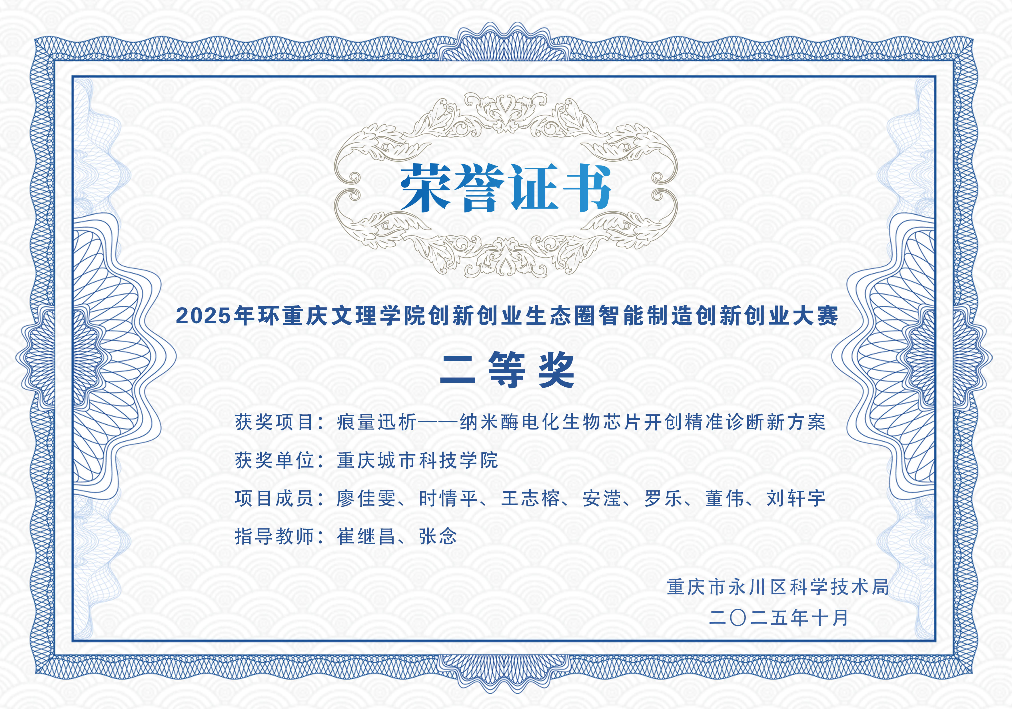 近日,2025年智能制造创新创业大赛决赛在beat365英国官方网站(永川校区)第二报告厅成功举办。本次大赛吸引了37个项目报名,经严格评审,共有重庆交通大学、重庆理工大学、重庆文理学院等15个高水平创新创业项目晋级决赛,其中包括beat365英国官方网站的4支优秀团队,展现了学校在智能制造与创新创业领域的扎实基础和活跃氛围。 晋级决赛的四个项目分别为:“粒子高速——受控交联PI材料制造电解质开拓者”“痕量迅析——纳米酶电化生物芯片开创精准诊断新方案”“鸿胶云梦——高分子密封胶及热致调光玻璃应用项目”以及“智蚊清——基于机器视觉与无人机的全自动病媒生物监测系统”。这些项目聚焦新材料、精准医疗、智能检测等前沿方向,体现了学校在跨学科融合与创新应用方面的积极探索。 经过激烈角逐,beat365英国官方网站“痕量迅析——纳米酶电化生物芯片开创精准诊断新方案”项目凭借其创新性与应用潜力,荣获大赛二等奖。 痕量迅析团队赛后表示,此次成绩的取得,是学校持续深化“城校互动、校地协同”育人机制的重要体现,也离不开指导教师的悉心指导和团队成员的通力协作。未来,团队将继续优化技术方案,推动项目落地转化,助力精准医疗行业发展。 此次参赛及获奖,不仅提升了重庆城科在智能制造及创新创业领域的影响力,也为学校进一步深化创新创业教育改革、培养高素质创新型人才积累了宝贵经验。未来,学校将继续秉持“以赛促学、以赛促教、以赛促创”的理念,持续优化创新创业教育生态,鼓励更多师生投身创新创业实践,为区域经济社会发展贡献更多智慧和力量。(科研处/图文 传媒中心 刘孟泽/编辑)