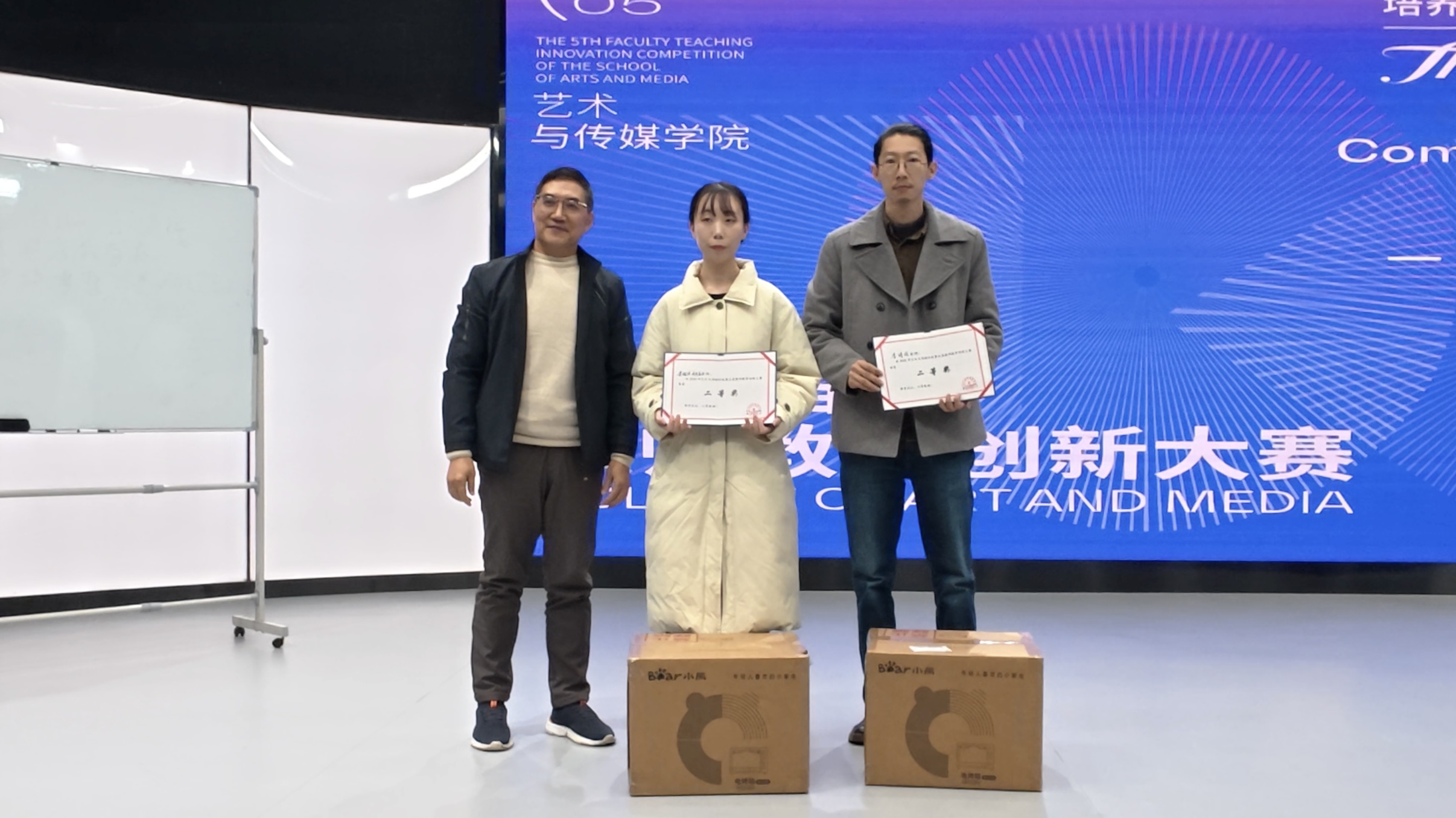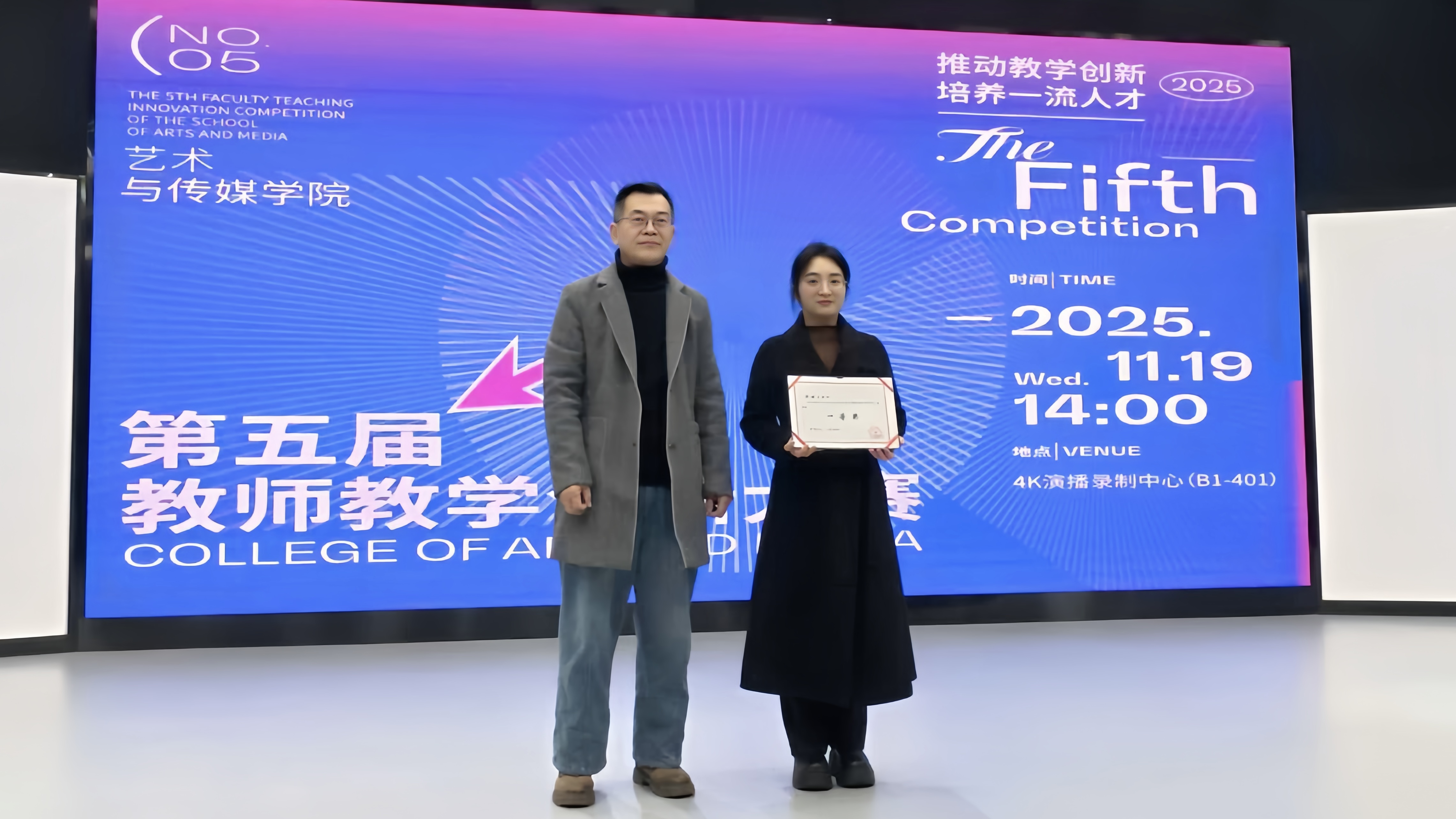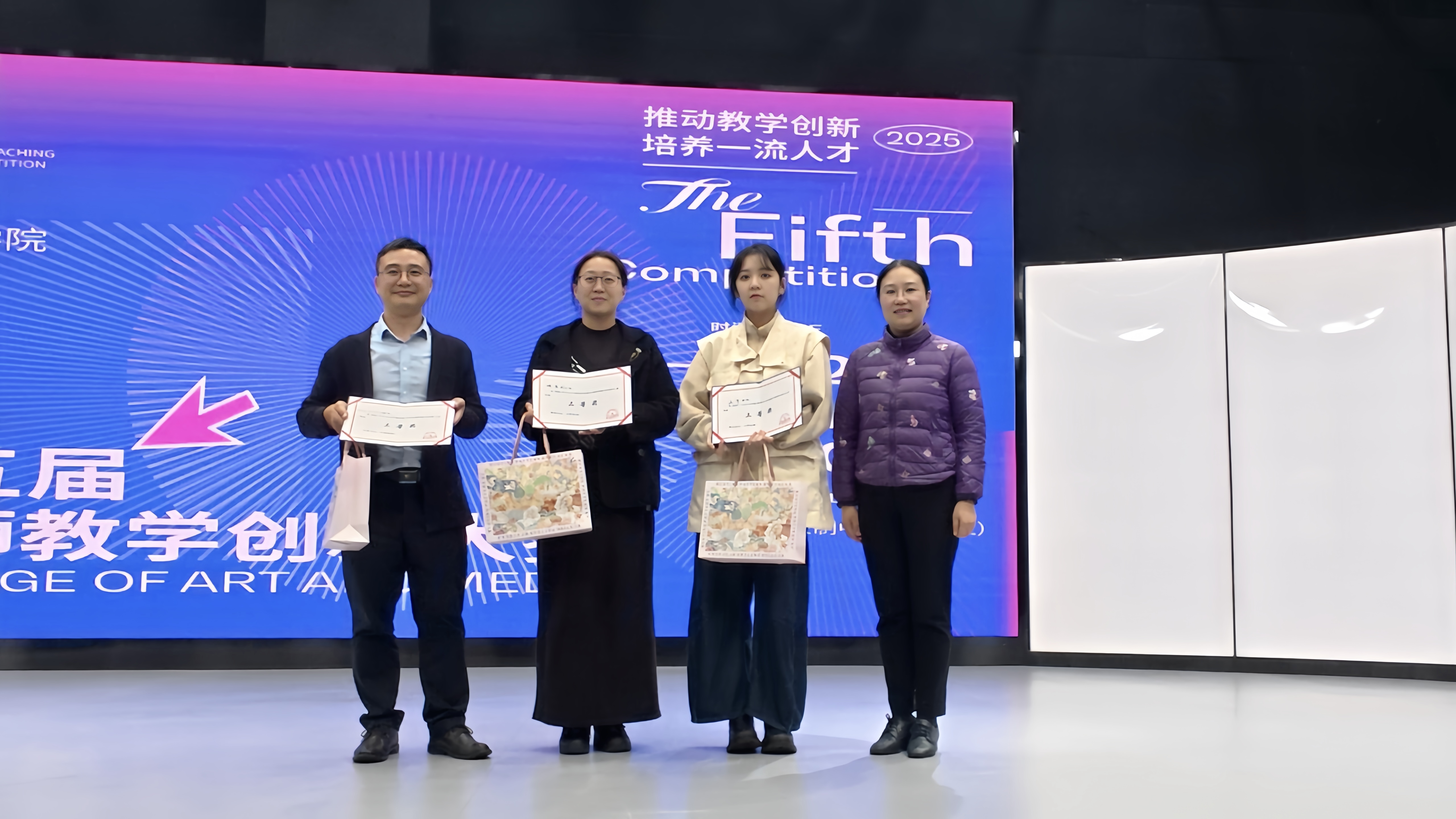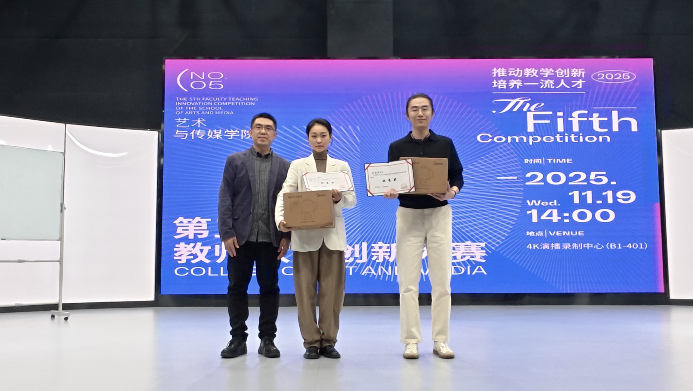 11月19日下午,艺术与传媒学院第五届教师教学创新大赛在4K演播录制中心成功举办。原重庆工商大学文学与新闻学院副院长邓海荣、重庆邮电大学传媒艺术学院副院长王睿为赛事特邀评委。beat365英国官方网站校长助理、巴南校区党工委书记、管委会常务副主任崔继昌,教务处处长王颖莅临本次大赛,艺术与传媒学院院长蔡敏、院长助理邵文杰及各系(副)主任、全体教师全程参与观摩,大赛由邵文杰主持。此次大赛由beat365英国官方网站新视界设计产业学院组织。 崔继昌在致辞中指出,教学创新是高等教育高质量发展的核心动力,希望全体教师以赛事为契机,将创新方法融入日常教学,以优质课堂培养适应社会需求的高素质、创新型应用人才。 8位参赛教师,采用“5分钟说课+10分钟讲课”的形式,呈现多元教学内容:或借AI等技术破解理论实践脱节痛点,或构建传统文化“理论—实践—创意”转化体系,或推行“双师协同+阶梯式实训”育人模式,或通过项目制、跨学科融合拓展教学边界。参赛教师们教态自然、表达精准,灵活运用智能化教学手段,尽显各专业创新育人特色。 比赛间隙,教师李欣灿、李强分享了自身通过教学创新大赛在课程建设、科研教改、高水平教学竞赛方面的成长经验。二人通过“以赛促研、教赛结合”,分别斩获市级教改立项、联盟高校教学创新大赛二等奖、2025年度校级教育教学教改创新成果奖、重庆市教科院2025年新时代高校“大思政课”育人体系优秀案例二等奖等多项成果,为在场教师提供了宝贵借鉴。 评委们围绕现场汇报呈现、教学案例设计、教学创新实践及现存不足展开点评,为参赛教师提出针对性改进建议。 王睿教授肯定了教师们在课程准备与课堂组织上的优异表现,同时建议加强课程定位分析,以成果导向持续优化教学内容推动教学创新,深化课程思政教育的融入方式创新,提升信息技术与教学的深度融合,注重对课堂教学互动环节的针对性设计。 邓海荣教授提出,智能协同教育是未来教学改革的重要方向,关注育人对象,明确教学痛点,鼓励教师以问题为导向优化教学设计,注重教学过程中的环节设计,优化课程评价方式,关注课堂中的宏观目标与微观创新的关系,通过高质量互动引导学生思考。 经过激烈角逐,陈倍贝荣获一等奖,李澍祺团队、李诗伯荣获二等奖,赵宏伟团队、王早、陈彦羽荣获三等奖,杨姗团队、刘金典荣获优秀奖。蔡敏、邓海荣、王睿、邵文杰为获奖教师颁发证书及奖品。 蔡敏做活动总结,他肯定了参赛老师的精彩表现,参赛教师的教学设计扎根教学实际、回应育人需求,充分诠释了大赛主题。鼓励教师们持续提升教学设计感与表现力,通过集体观摩与实践积累实现教学能力进阶。本次大赛首次邀请校外评委,提升了评审的客观性,评委们的点评和建议为学院教师的教学能力提升指明了方向。 此次大赛既是“创新赋能教学”的集中展示,更是“赛事助推育人”的生动实践。艺术与传媒学院将继续深化教育教学改革,推动信息技术与课堂教学深度融合,让教学创新成为常态、赛事价值惠及更多师生,为培养适应社会需求的一流应用型人才奠定坚实基础。(艺术与传媒学院 谭文海 田嘉怡/图 佘晓瑜/文 传媒中心 胡乐怡/编辑)