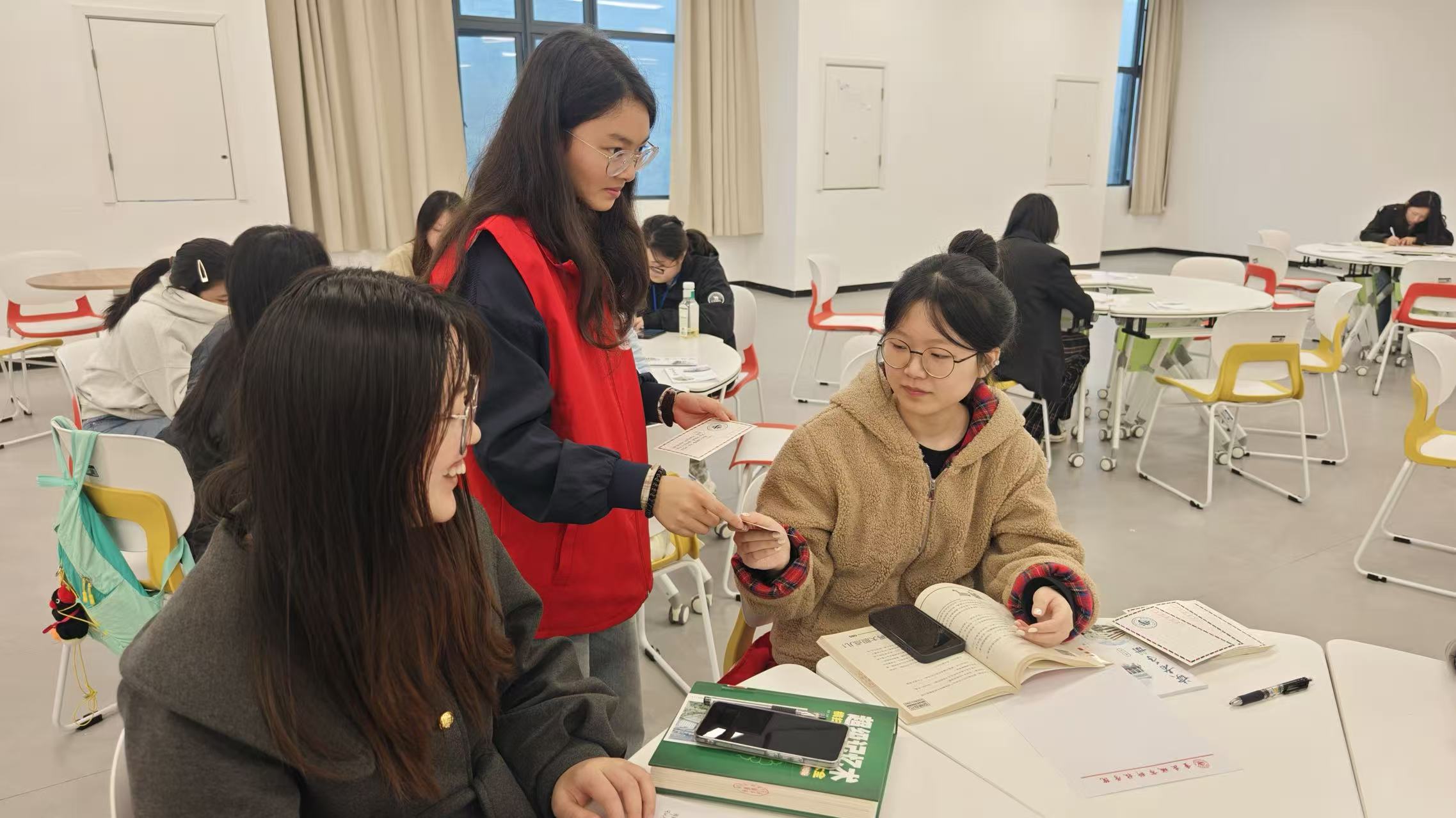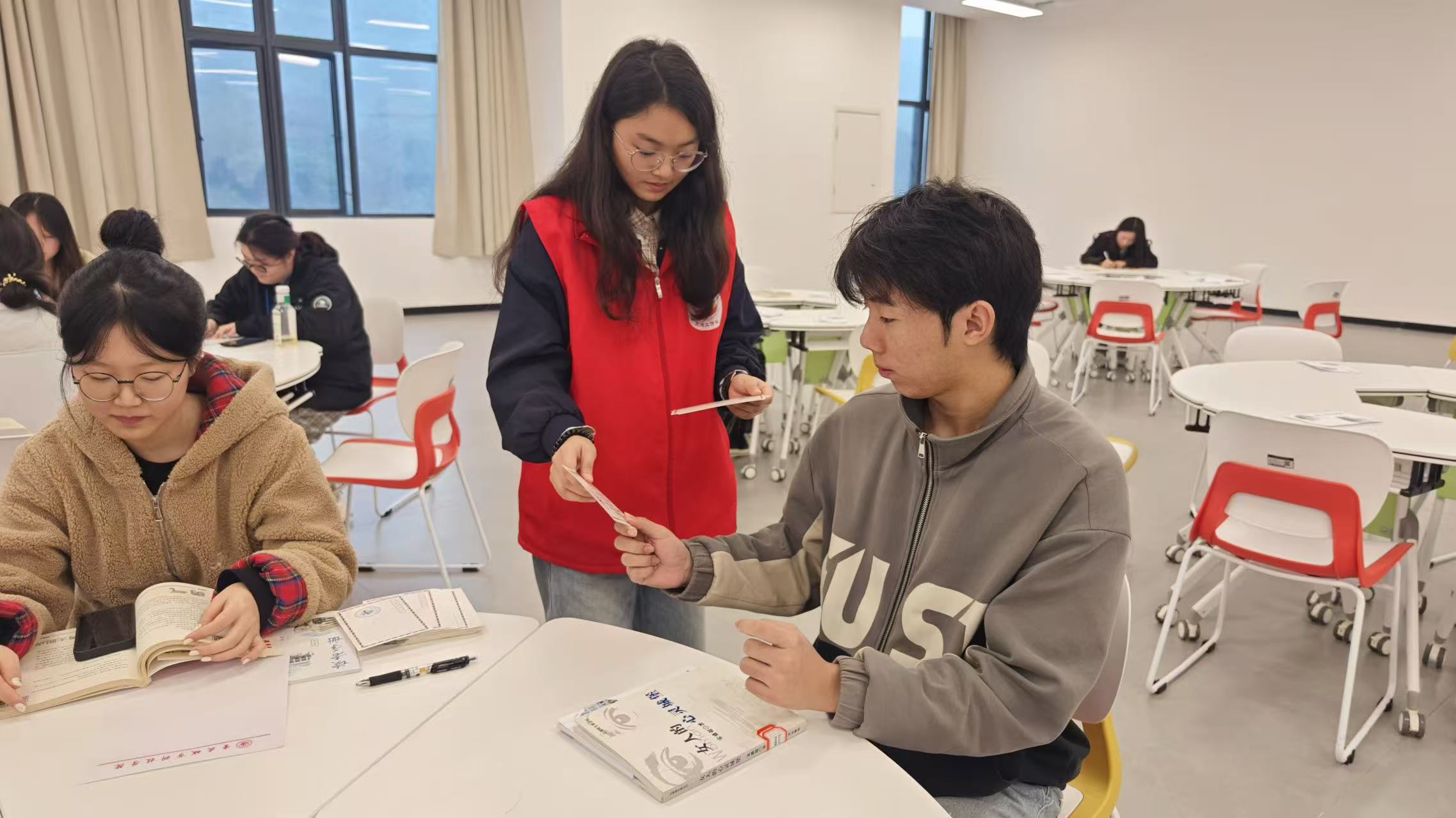 为深入推进学风建设走深走实,以文化浸润厚植勤学善思的优良学风,11月14日下午14:00,人工智能与大数据学院学生第一党支部联合图书馆举办“午后阅读马拉松”活动,搭建起沉浸式阅读与志愿服务双向赋能的育人平台。 学风建设是校园文化的核心,阅读则是涵养学风的重要途径。下午14:00,阅读马拉松活动在图书馆正式启动。活动伊始,读书协会成员韩乐同学就活动流程与规则进行了详细说明。 (主持人讲解) 本次活动精选了文学、历史、科技等多领域的经典著作,旨在满足同学们多元的阅读兴趣。阅读期间,同学们静坐一隅,沉浸于翰墨书香,在静谧氛围中品味阅读之乐,展现出勤学上进的良好风貌。 (同学们认真阅读) 活动中,志愿工作者化身“阅读守护者”,全程提供书籍查找、流程咨询等细致帮扶,同时以轻声引导、有序巡视维护现场秩序,全力营造专注纯粹的阅读氛围。志愿服务精神在无声陪伴中传递,也为学风建设注入温暖力量。 (志愿者解答问题) 活动尾声,志愿者有序回收同学们书写的阅读感悟明信片,逐张核对后分类整理,同时协助整理书籍、归置座椅,确保场馆恢复整洁。 (志愿者们收集明信片) 此次活动以阅读滋养学风,以志愿服务传递责任担当。既让同学们在沉浸式阅读中涵养求知热情,也让志愿者在实践中提升服务能力,有效营造了书香浓郁的校园氛围,为学风建设注入务实动力。未来,学院将持续探索阅读与志愿服务融合模式,推动学风建设走深走实。 (志愿者合影留念) (人工智能与大数据学院学生第一党支部 吴家敏/图文 传媒中心熊素平/编辑)