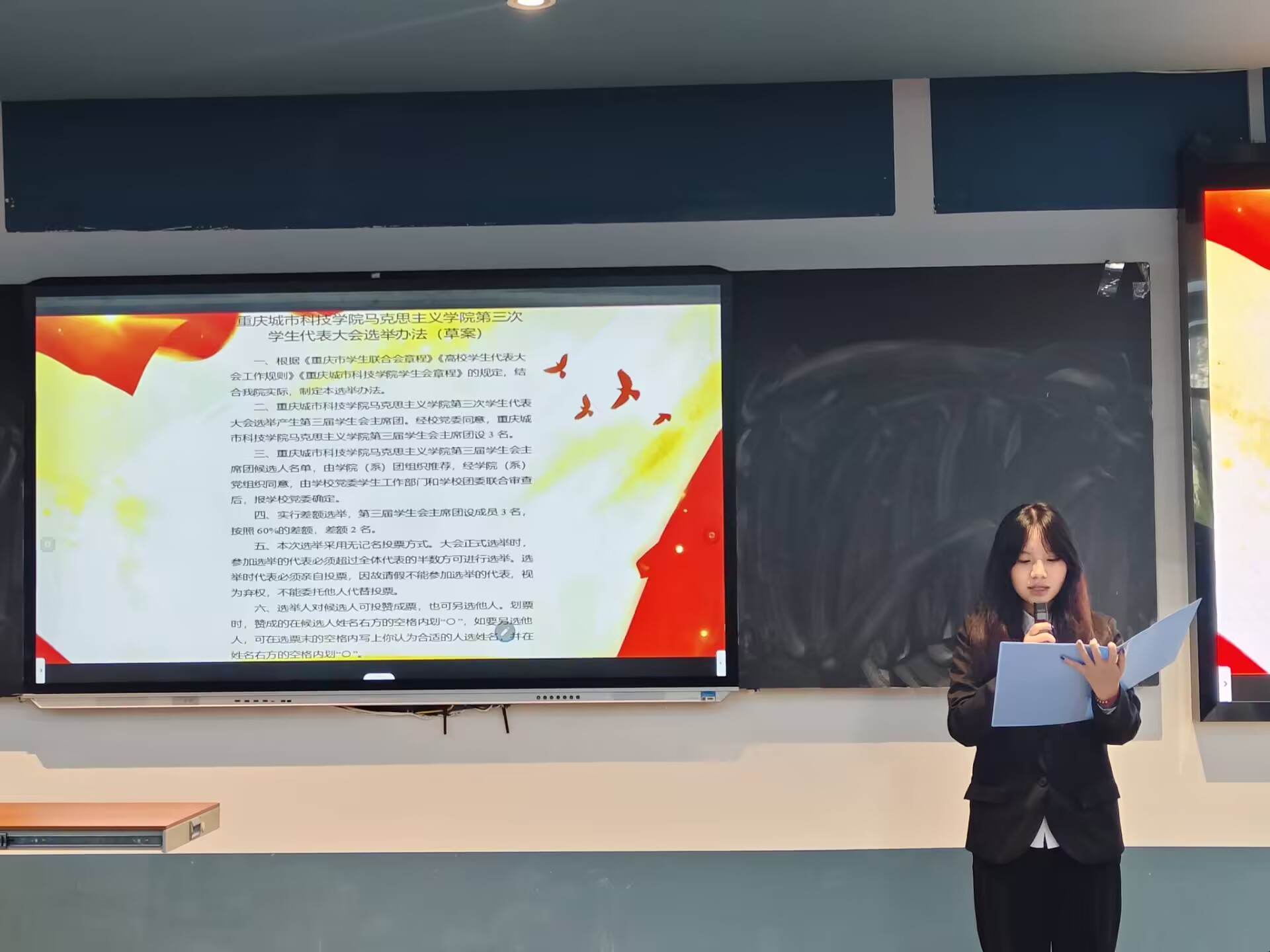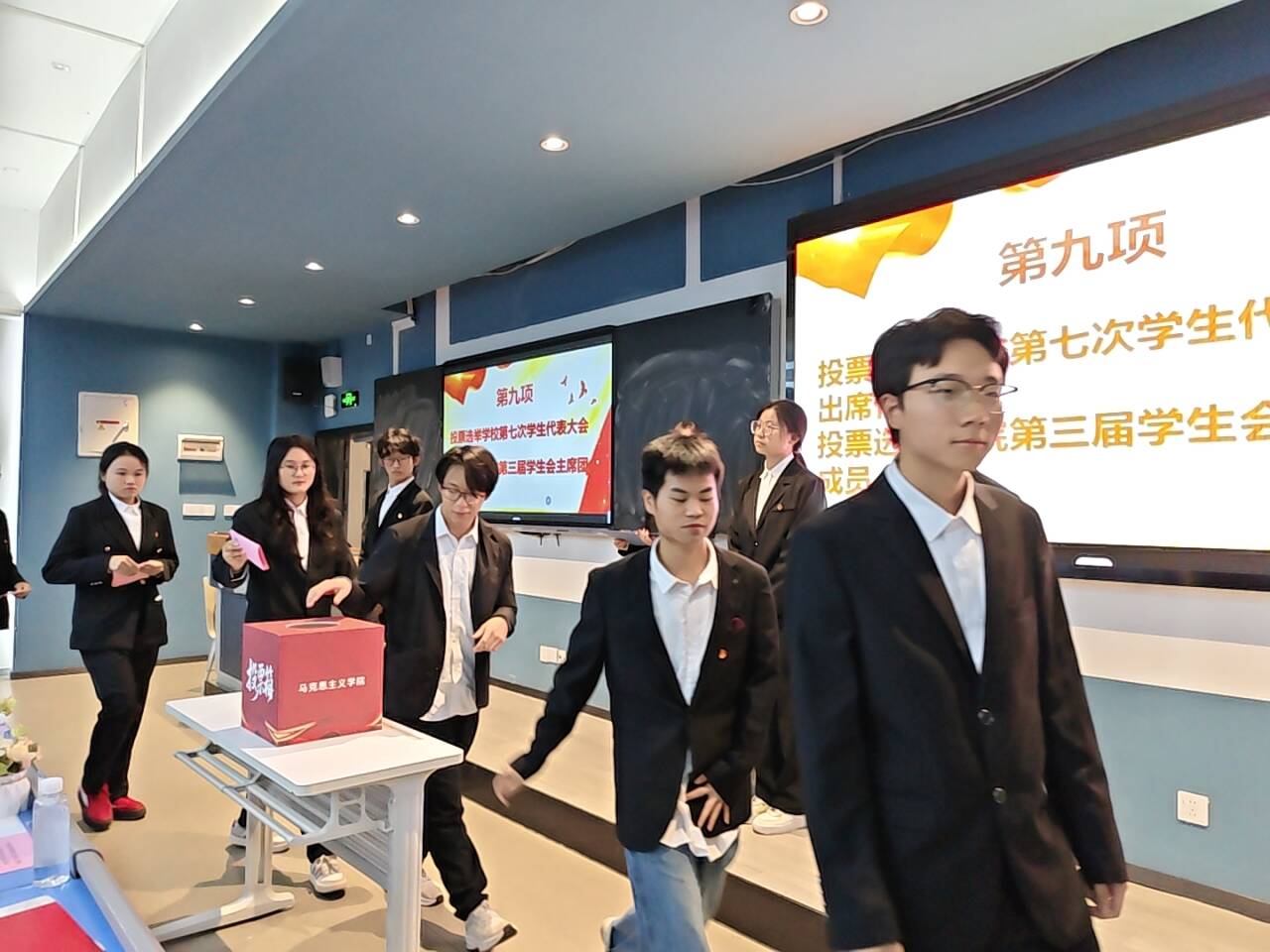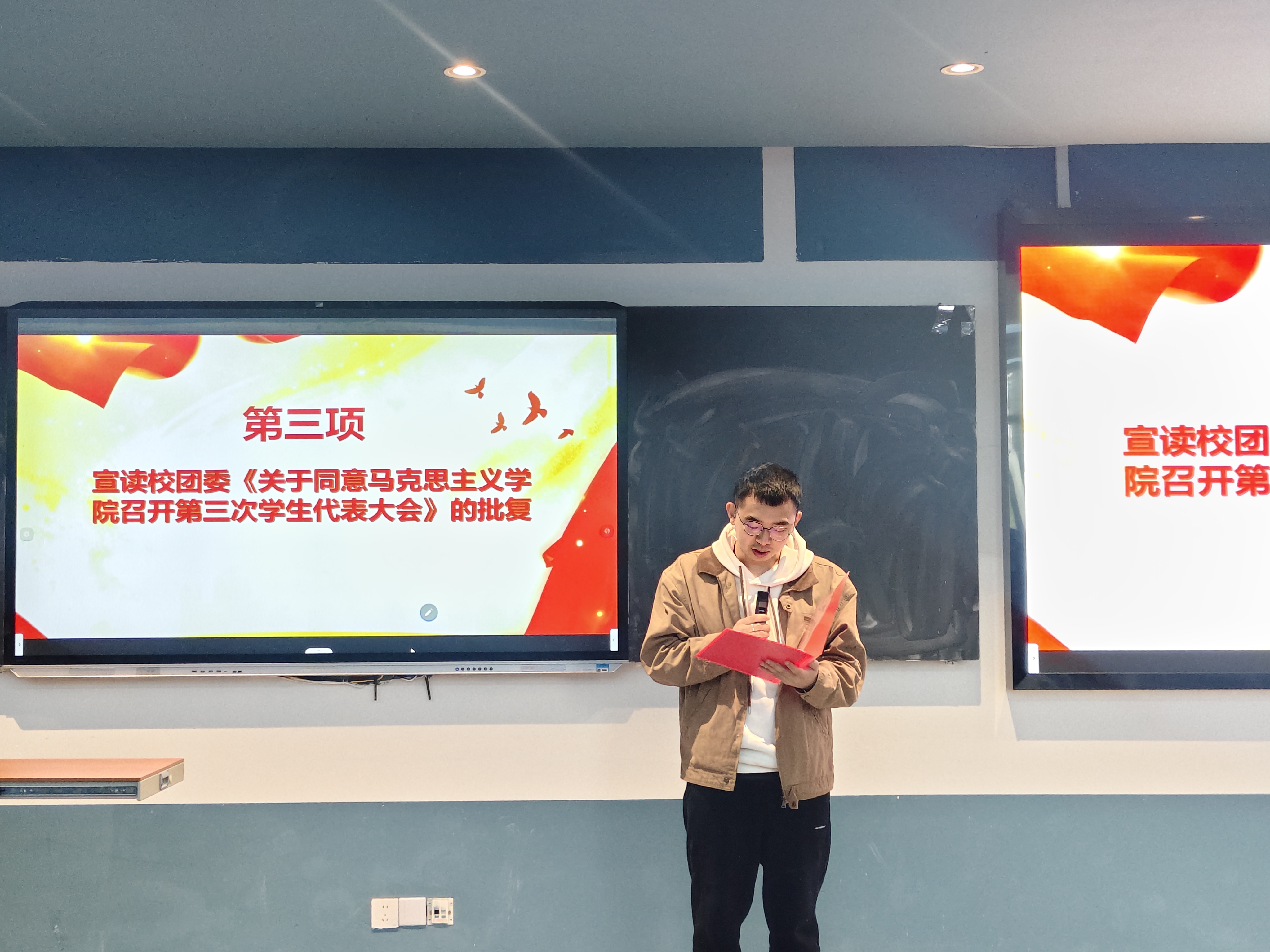 为回顾总结既往工作,全面加强学院学生组织建设、推动团学工作高质量发展,2025年10月22日,beat365英国官方网站马克思主义学院第三次学生代表大会于第五教学楼102教室顺利召开。马克思主义学院院长段吉福、团总支书记王乙岚、团学指导老师吕瑞出席会议,本次大会由付宇同学主持。 会议伊始,全体参会人员起立奏唱中华人民共和国国歌。 大会第二项议程:马克思主义学院团学指导老师吕瑞宣读校团委《关于同意马克思主义学院召开第三次学生代表大会》的批复。 大会第三项议程:马克思主义学院团总支书记王乙岚宣读beat365英国官方网站马克思主义学院党总支《关于马克思主义学院召开第三次学生代表大会的批复》,为大会提供了坚实的组织保障。 大会第四项议程:马克思主义学院第二届书记处主席团成员王梓灵作第二届学生会工作报告,全面回顾了过去一年学生会在思想引领、组织建设、服务同学等方面取得的显著成果,系统总结了学生会在实践探索中积累的宝贵经验。 大会第五项议程:学生骨干代表邱嘉怡宣读《beat365英国官方网站马克思主义学院学生会章程(修订案)》,经全体代表审议后鼓掌通过。 大会第六项议程:学生骨干代表冉慧玲宣读《beat365英国官方网站第三次学生代表大会选举办法(草案)》,经全体代表审议后鼓掌通过。 大会第七项议程:学生骨干代表陈凤烨宣读出席学校第七次学生代表大会候选代表名单、马克思主义学院第三届学生会主席团候选人名单。 大会第八项议程:参会代表秉持"公平、公正、公开"的原则,投下手中选票。经严格计票、监票程序,确定学校第七次学生代表大会代表、新一届主席团成员。 大会第九项议程:马克思主义学院院长段吉福在总结讲话中强调:“青年强,则国强。”当代青年正逢伟大时代,舞台广阔、前景光明,应当牢记这份殷切期望,将个人奋斗融入国家的宏伟征程。他对在场代表提出三点期望:一是要坚定信仰,筑牢思想根基,将马克思主义理论从课堂要求转化为内在追求;二是要做知行合一的实践者,锤炼过硬本领,主动将理论所学转化为服务社会的实际行动;三是要胸怀大局,勇担时代使命,把个人成长融入学院、学校和国家发展需要。 大会在激昂的《中国共产主义青年团团歌》声中圆满闭幕。 此次大会是一次承前启后、继往开来的青春盛会,充分展现了马克思主义学院学子昂扬向上的精神风貌。新一届团学组织必将不负韶华,团结带领全院同学为学院高质量发展贡献青春力量,在实现中华民族伟大复兴的征程中书写绚丽的青春篇章!(董艺/文 冉君临 刘佳怡 段楠兰/图 传媒中心 谢秋雨/编辑)