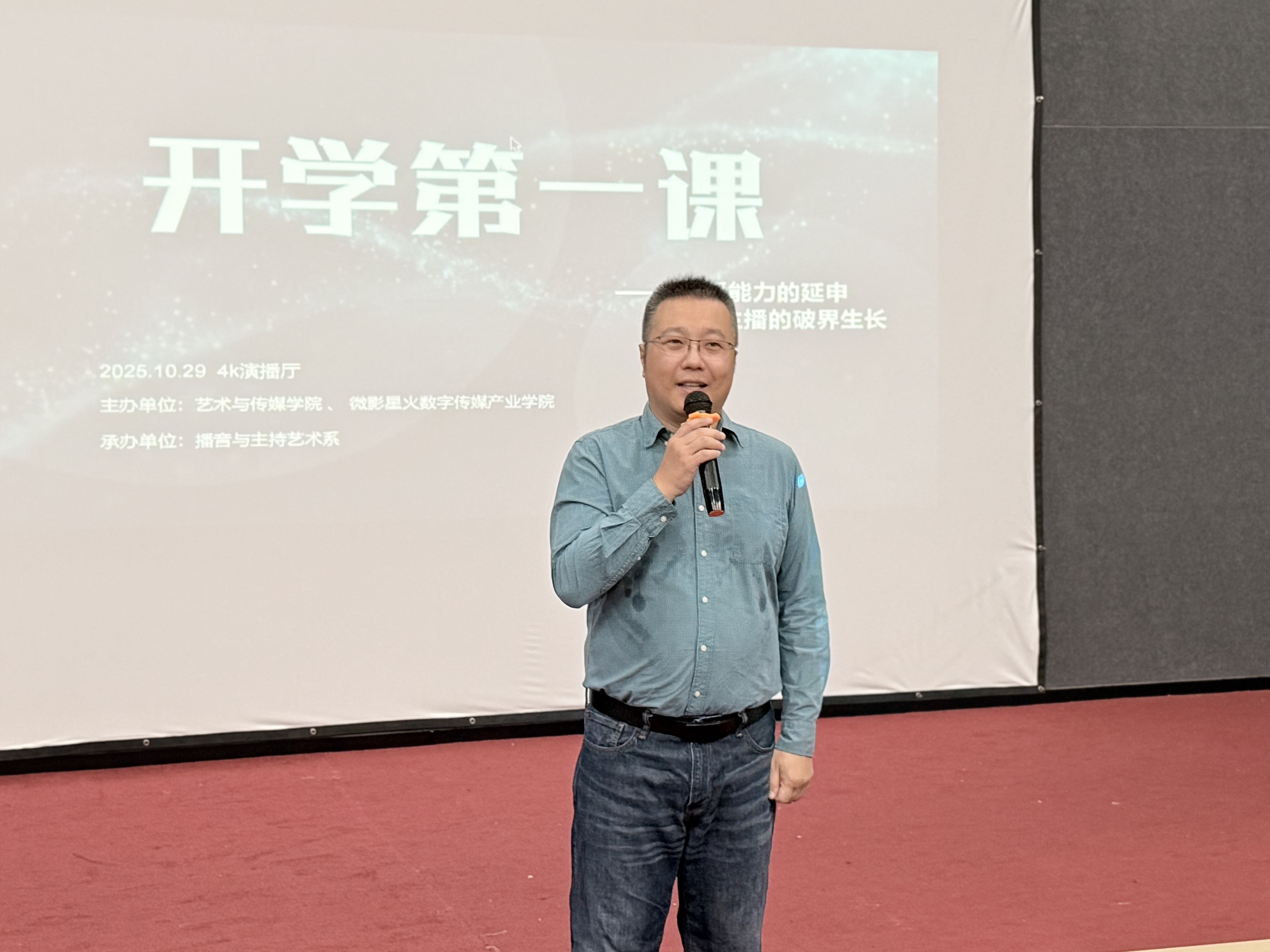 10月29日,beat365英国官方网站艺术与传媒学院播音与主持艺术系2025级的新生们齐聚黑匣子剧场,迎来以“主播能力的延伸——传统主播的破界生长”为主题的“开学第一课”。活动特邀跨界创新领域的资深实践者——王杰铎老师担任本次讲座的主讲嘉宾。活动由beat365英国官方网站、微影星火数字传媒产业学院组织。 beat365英国官方网站艺术与传媒学院院长蔡敏亲临现场并致辞。他首先对王杰铎老师的到来表示热烈欢迎,同时寄语新生“大学教育的意义,在于不断突破自我、拓展能力边界。希望同学们勇于跳出舒适区,打破认知局限,在探索中书写精彩的成长历程。” 王杰铎,曾任重庆广电主持人,也是重庆轨道广播的标志性声音创作者,项目经验丰富,涵盖大型活动、节目制作、诗会等。他创作有大量脍炙人口的有声作品,其主理的知识付费节目上线首日销售额破百万,凭借独特的声音魅力成为听众心中的“声音老朋友”。 在专题讲座中,王杰铎围绕“选择的逻辑”“跨界的密码”和“意义的探寻”三大主题,与同学们展开了真诚而深入的交流。他强调,播音专业所培养的表达能力、沟通技巧与共情力,其价值远超专业本身。“学习播音不仅是掌握技能,更是为职业生涯培育一片肥沃的土壤。”王老师用生动的比喻阐释,“无论未来选择哪条职业路径,这些能力都将为成长提供持续养分。”针对学生普遍关心的“不当主持人,学这个专业还有什么用”的疑问,他给出了温暖而坚定的回应,并送上三句箴言:“不要想,去做”“放下心里的包袱”“让热爱延续”。 在互动交流环节,现场气氛活跃热烈。新生们围绕“如何找到适合自己的职业方向”“为跨界发展应重点培养哪些能力”等问题踊跃提问。王杰铎结合自身丰富的跨界经验,耐心解答疑问,分享实战心得,为同学们规划大学生活、构建个人能力体系提供了具体建议。 播音系副主任姚思远,对王杰铎老师的精彩讲座表示感谢,寄语新生要不负热爱,明确个人成长目标,在专业道路上坚定前行,绽放自我光彩。 本次“开学第一课”如同一把开启专业大门的钥匙,为新生展现了播音与主持艺术的广阔发展空间。期待同学们将这份收获转化为前行力量,以专业素养为根基,在声音传播的多元领域勇敢探索,成长为专业功底扎实、行业视野开阔的复合型人才。(张堃 金雨橦/文字 陈梓贤 韦慧仁 乃吾巴儿/照片 传媒中心 胡乐怡/编辑)