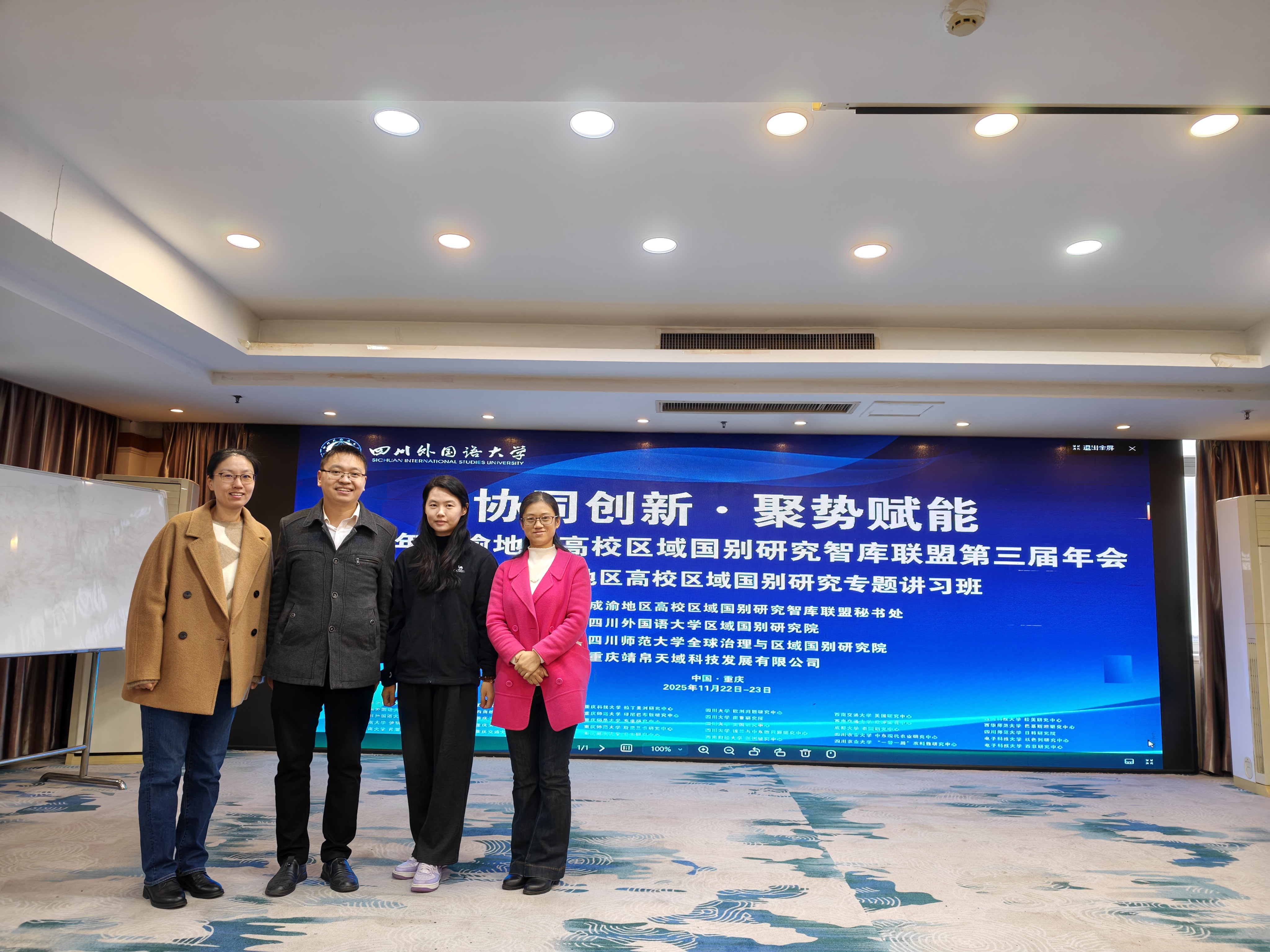 2025年11月22日至23日,第三届成渝地区高校区域国别研究智库联盟年会在四川外国语大学顺利召开。人文学院副院长黄伟带队,大学外语二系副主任杨雪飞、外国语言与文化系胡若曦及王怡三位教师共同赴会,深度参与学术研讨与经验交流,为人文学院跨学科融合与区域国别研究实践应用提质增效,翻开发展新篇章。 作为年会重要前置环节,11月22日的首届成渝地区高校区域国别研究专题讲习班,汇聚多位领域权威专家授课。四川外国语大学区域国别研究院执行院长陈广猛教授、重庆市委外办秘书处处长冯仁勇博士、四川师范大学全球治理与区域国别研究院执行院长吕京教授、南京大学中美文化研究中心石斌教授,围绕“地方高校区域国别研究开展路径”“服务内陆开放综合枢纽的研究方法论”“研究与人才培养融合”“学科建设核心问题”四大模块,带来兼具理论深度与实践价值的课程。人文学院四位教师全程专注研习,在互动环节针对民办高校跨学科融合、国际传播人才培养体系构建等关键问题,与参会同仁深入探讨,为人文学院教学改革与科研突破积累宝贵经验。 11月23日,以“协同创新・聚势赋能:成渝地区高校区域国别研究智库助推内陆开放高地建设”为主题的第三届联盟年会正式启幕。重庆市委外办、重庆市社科联、南京大学等单位专家学者,分别围绕“中西部国际交往中心建设”、“区域国别学科建设”、“亚太安全环境” 等前沿议题分,分享最新研究成果与实践思路。分组讨论阶段,人文学院四位教师分赴相关议题会场,与来自西南大学、电子科技大学等高校的代表,聚焦中东、非洲、拉美及东亚、东南亚研究方向,就成果转化、战略服务落地等内容深入交流。黄伟副院长代表人文学院在分组讨论中介绍了学校办学规模、人文学院专业设置及“英语 + 法学”、“英语 + 中国文化”的复合型人才培养探索,引发与会嘉宾关注与共鸣。 此次参会是人文学院对接区域发展战略、深化校际合作的重要举措。两天的学习交流中,教师们拓宽了学术视野,明晰了跨学科师资建设、科研方向聚焦、人才培养模式创新的核心发力点。未来,人文学院将以此次参会为契机,吸收借鉴兄弟高校先进经验,推动区域国别研究与教学科研深度融合,优化复合型人才培养方案,提升服务国家战略与区域发展的能力,为学校高质量发展注入强劲新动能。(王怡/图 王怡/文 传媒中心 易雪/编辑)