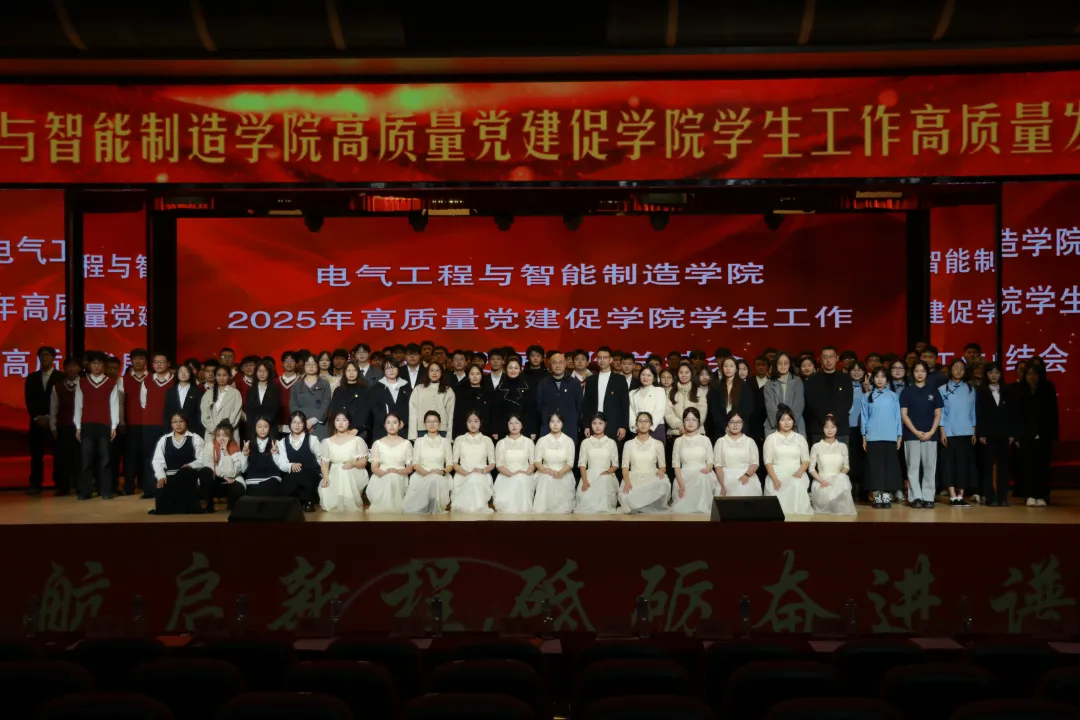 为深入贯彻落实第二十八次全国高校党的建设工作会议精神,深刻认识高校党建工作的新使命新挑战新要求,明确新时代高质量党建对学生工作的引领作用,实现高质量党建引领学生工作高质量发展。2025年11月20日晚,电气工程与智能制造学院于第一学术报告厅开展2025年电气工程与智能制造学院高质量党建促学院学生工作高质量发展工作总结会。电气工程与智能制造学院院长陈进、党总支副书记李宇、副院长张玉林、大学生党建工作中心指导老师马煦玥、学院党总支组织委员徐源、党总支纪检委员陈晓庆、党总支青年委员陈慧、学生第一党支部书记张雪雪、学生第三党支部书记牟凤利及党建工作站指导老师出席会议。电气工程与智能制造学院学生代表以及党建工作站、集成电路创业史陈列馆全体人员参会,本次大会由尹代松,李思静同学主持。 (图1 会议全景) (图2 主持人) 第一篇章 初心铸魂忆征程,薪火赓续显担当 (图3 朗诵表演) 《百年正青春》朗诵表演结束后,主持人尹代松致开场词并介绍领导及嘉宾,接着护旗手迈着铿锵有力的步伐走进舞台中央,参会人员全体起立,奏唱国歌。 (图4-5 全体成员奏唱国歌) 会议伊始,大学生党建工作中心指导老师马煦玥老师上台为本次大会致辞。首先,她回顾电气工程与智能制造学院以党建工作站、集成电路陈列馆为载体,借“三线精神”引领学生工作的成果。接着,介绍工作站夯实党务、开展志愿服务活动、打造“党建促学风”品牌,以及陈列馆在传承红色文化、助力思政建设的作用。最后,她号召师生奋进,助力学生工作发展、培育青年人才,并预祝大会成功。 (图6 马煦玥老师致辞) 紧接着,徐源老师和张院强老师为电气工程与智能制造学院党建工作站第四届骨干及集成电路创业史陈列馆第七届骨干颁发聘书。 (图7-8 颁发聘书) 承前启后,再谱新篇。集成电路创业史陈列馆第七届骨干代表杨洪承发言。首先,他代表陈列馆及学院党建工作站向长期关心支持相关工作的领导、老师和同学表达感谢;接着,他回顾了过去一年陈列馆作为市区两级爱国主义教育基地,在红色文化传播、科研精神传承及情景剧《“芯”征程》展演等方面的成果,同时介绍了学院党建工作站在党务工作、特色品牌活动等方面的成效;最后,他寄语新一届骨干及干事,希望大家接续奋斗根基、秉持进取之心,以坚定信念与务实作风创造新业绩,为事业发展注入新活力。 (图9 学生骨干杨洪承发言) 初心如磐,使命如炬。徐源老师宣读《2024-2025学年高质量党建促学院学生工作高质量发展表彰文件》。随后,陈进院长、张玉林副院长等多位院领导及老师,分别为“优秀部门”“陈列馆优秀骨干”等7类奖项的获得者颁奖,各获奖代表上台领奖并合影,大会氛围庄重热烈。 (图10 徐源老师宣读表彰文件) (图11-17 颁奖仪式) 接力新起点,奋斗正当时。由学生们带来情景剧表演《致青春》,它告诉我们,共产党员的青春,永远与信仰同行,与奋斗共进。这场演出,为此次换届大会烙下了深刻的青春印记,也激励着新老两代党员,在各自的赛道上,共同跑好历史的接力棒。 (图18-19 情景剧表演) 第二篇章 使命聚力启新程,青春筑梦向未来 情景剧《致青春》的精彩演绎落下帷幕,会议随即进入第二篇章。盛一凡老师上台宣读电气工程与智能制造学院第五届党建工作站及集成电路创业史陈列馆第八届骨干名单,正式揭开换届新篇章。随后,电气工程与智能制造学院党建工作站及集成电路创业史陈列馆换届交接仪式顺利进行。 (图20 盛一凡老师宣读骨干名单) (图21 换届交接仪式) 青春寄语,展望未来。第五届党建工作站站长何磊发言,从理论传播、创新实践、组织建设、打造特色品牌四个方面具体讲述了党建工作站未来发展目标,并表示将以初心为舵、以实干为帆,在创新中求突破,在奋进中谋发展。紧接着,全体观看学长学姐的寄语视频,既有经验传承也有殷切期许,让在场同学备受鼓舞。 (图22 党建工作站站长何磊发言) 殷切嘱托,寄予厚望。会议尾声,李宇副书记做总结讲话。她首先代表电气工程与智能制造学院党总支,向受到表彰的先进组织与个人致以热烈祝贺,对电气工程与智能制造学院全体师生致以崇高敬意与感谢之情。回顾了过去党建工作站和陈列馆的工作成果,从“把稳思想之舵,夯实理论基础”“传承红色使命,坚守初心立场”“创新实践锻炼,彰显使命担当”“强化组织凝聚力”“做好梯队建设,传承红色薪火”五方面对新一届学生骨干表达期望。李宇副书记强调要心怀梦想,脚踏实地,勇往直前,不断提升自我素养让青春在不懈奋斗中绽放绚丽之花。 (图23 李宇副书记作总结讲话) 党建引领,聚力前行。本次换届大会既是对电气工程与智能制造学院党建工作站及集成电路创业史陈列馆过往一年工作的全面总结与成果表彰,更是凝聚新力量、绘画新蓝图的动员大会。愿新一届骨干与干事们牢记使命、勇担重任,以昂扬姿态、坚定信念投身学院工作,共同推动学院各项事业高质量发展,书写电气工程与智能制造学院建设的崭新篇章! (图24 合影留念) (马冰冰/文 高雪芹/文 罗裕/图 熊程亿/图 传媒中心 易雪/编辑)