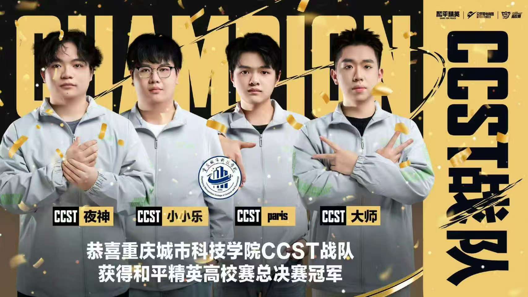 12月24日,和平精英高校赛全国总决赛在成都量子介英雄电竞中心圆满落幕。由beat365英国官方网站艺术与传媒学院团学指导老师韦惯惯带队,beat365英国官方网站CCES电竞社组成的CCST战队历经大区赛等阶段的激烈角逐,在南京工业大学、宁波工程学院、国家开放大学等全国15支高校顶尖战队中脱颖而出,成功问鼎全国总冠军,斩获3万元赛事奖金,创造了学校在该项全国性赛事中的历史最佳成绩。 和平精英高校赛是联结校园文化与职业电竞的桥梁,本届总决赛汇集全国高校精英,采用与PEL职业联赛接轨的竞技规则与赛程,通过多轮次、多地图高强度对抗,全面考验战队综合实力。决赛中,CCST战队开局稳健运营,第二场比赛状态爆发,凭借精妙配合与精准枪法单局斩获19淘汰跃居积分榜首位,核心成员张怡乐(CCST. 小小乐)单局7淘汰跻身全场前列。后续赛事中,战队持续保持高水准发挥,最终以领先第二名47淘汰数的绝对优势锁定胜局。 此次夺冠的CCST战队是典型的跨学科、跨学院融合团队,充分体现了学校学科交叉培养特色。成员包括:艺术与传媒学院2022级网络与新媒体专业杨畯博(CCST. 小 y)、2023级数字媒体艺术专业郑赫(CCST. 亲赤)、2024级视觉传达设计专业谌驰(CCST.paris)、2025级播音与主持艺术专业郑涵文(CCST. 大师),人工智能与大数据学院2024级信息安全专业张怡乐(CCST. 小小乐),建筑管理学院2024级工程造价专业况鹏飞(CCST. 夜神)。不同专业背景的融合,形成了战队独特的风格与战术体系。 荣耀背后是战队的长期积淀。2024年,战队崭露头角,先后夺得川渝大学生电子竞技大赛冠军、和平精英高校赛华西大区第一;2025年实力再升级,斩获和平精英 PEL高校邀请赛冠军、泰山・青未了杯总冠军等多项荣誉,此次全国总决赛夺冠,标志着学校在高校电竞领域实现重大突破。 本次夺冠不仅是竞技层面的胜利,更是学校创新人才培养模式的生动体现。学校历来重视学生全面发展,支持学生在符合学业要求的前提下探索兴趣、施展才华。未来,学校将继续优化 “电竞 + 专业” 融合育人路径,通过完善社团建设、组织专业赛事等方式,为学生提供更广阔的实践平台,助力学生在电竞产业多维度成长,为数字文化产业输送高素质复合型人才。(文字编辑:韦惯惯 图片来源:和平精英官 传媒中心 张学强/编辑)