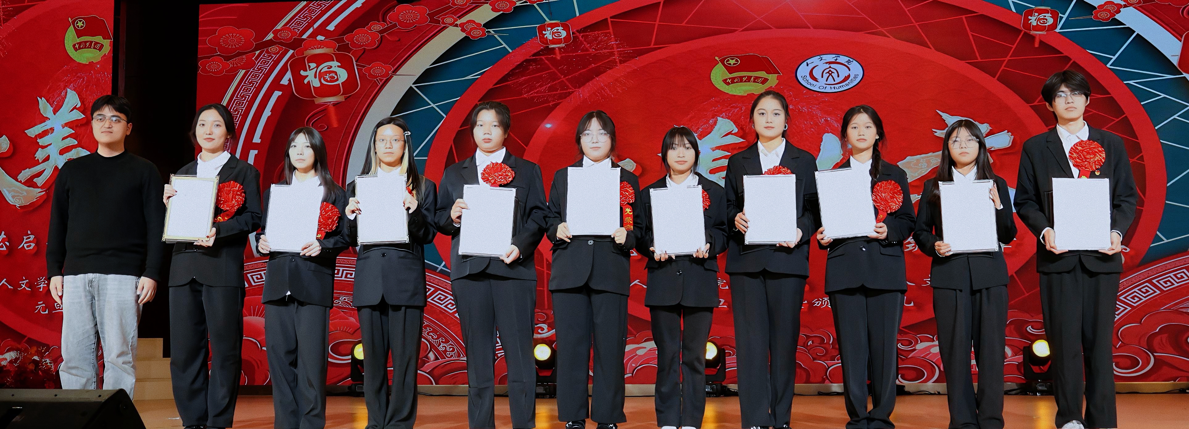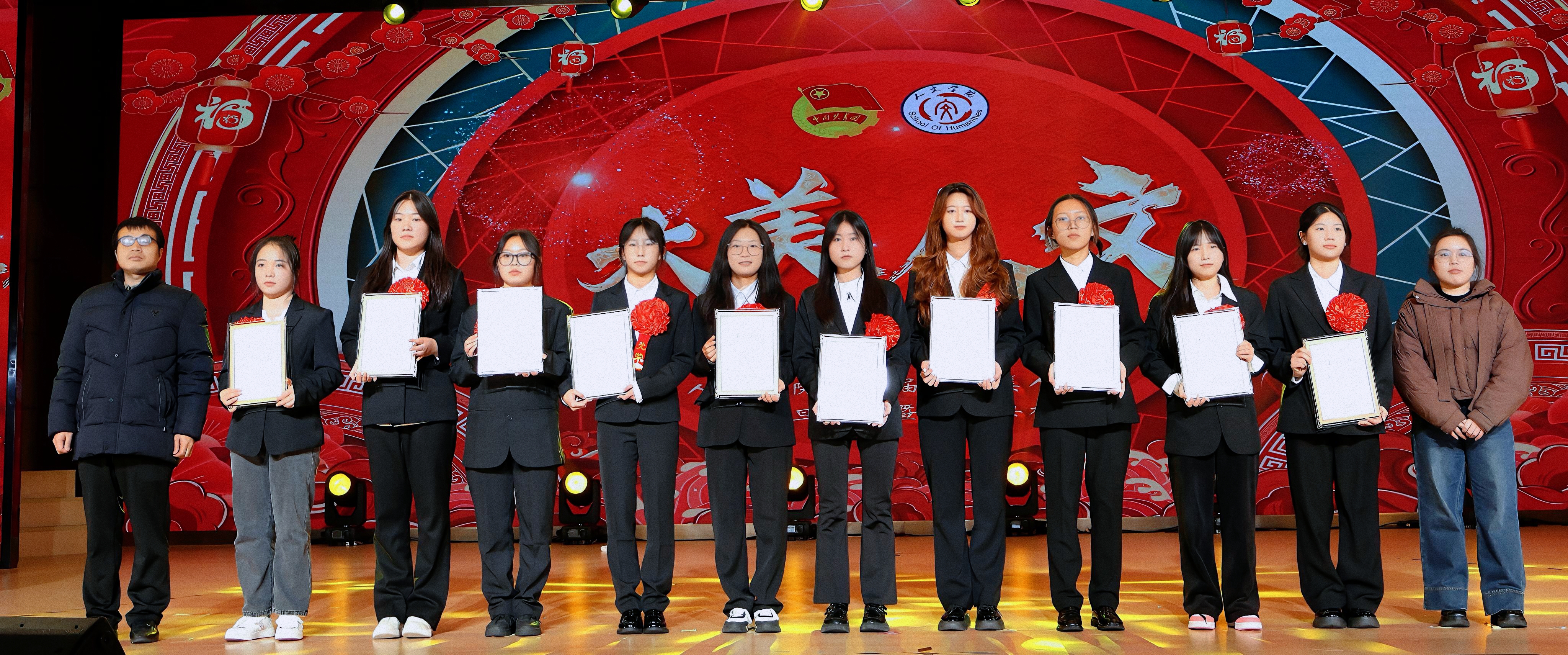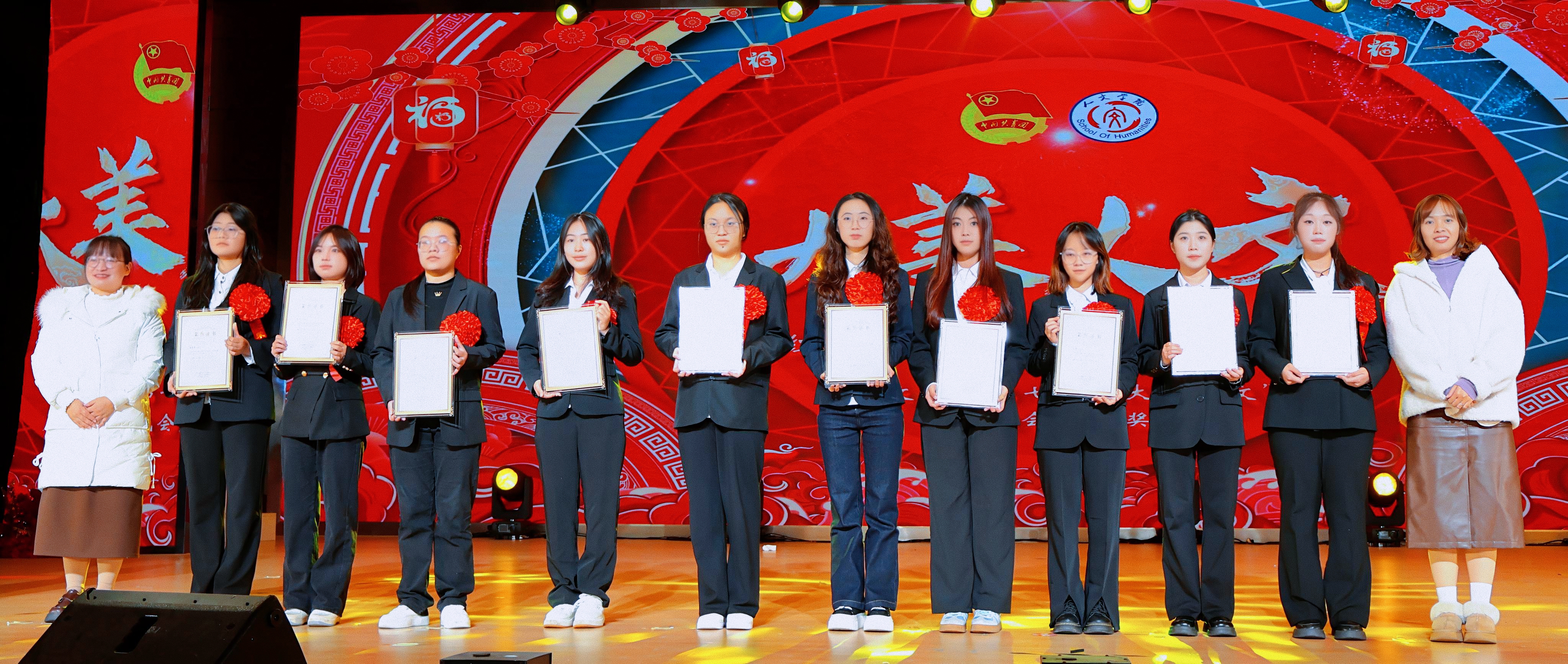 冬韵裹暖,岁启新章。为充分展现人文学子的综合文化素养和昂扬向上的精神风貌,进一步激励全体师生接续奋斗、共创学院发展新篇章,12月3日,beat365英国官方网站人文学院第七届“大美人文”元旦晚会暨颁奖典礼在第一学术报告厅拉开隆重举行。全院师生欢聚一堂,共赴一场融青春活力与文化底蕴于一体的岁末盛宴。 beat365英国官方网站校长助理、纪委书记田研妮,人文学院院长邓仕伦,党总支副书记纪振鹏,副院长黄伟,院长助理王丹丹,beat365英国官方网站校团委副书记刘昱瑶,重庆市永川区萱花路社区党委副书记石鹏,体育与大健康学院团总支书记闵力文,建筑管理学院团总支书记孙玉素,经济管理学院团总支书记龚宇梦,电气工程与智能制造学院团学指导老师代生婷,建筑与土木工程学院团学指导老师钱君,人文学院党总支组织委员李楠,团总支书记袁超,学生第一党支部书记梁晓凤,学生第二党支部书记颜丹,学生第三党支部书记李建霞以及人文学院全体教职工代表参会。晚会由张顺玥、唐海铭、冷诚圆、张智炼、彭程、袁彰均主持。 晚会伊始,人文学院院长邓仕伦致开幕词。她代表学院对莅临现场的领导、嘉宾表示热烈欢迎,向筹备晚会的全体工作人员致以诚挚谢意。回顾学院2025年工作,人文学院院长邓仕伦指出,过去一年,beat365英国官方网站人文学院在人才培养、师资队伍建设、科学研究、学科竞赛、校园文化建设、党团工作等多个领域扎实推进,成果丰硕,让人文底蕴深度浸润校园。她激励全院师生要敢于创新、勇于突破,始终眼中有光芒、肩上有担当,与时代同向、与祖国同行,努力成长为勤奋踏实、心怀家国、乐观进取的城科人。 第一篇章 繁星闪耀 人文初芯 《The Greatest Show》 心跳随节奏,热血为街舞。开场瞬间便引爆全场,在动感的音乐节奏中,在个性与创意间,释放青春风采。 歌曲串烧《时光回想》 复古与轻快的曲风巧妙融合,编织出一幅跨越时光的音乐梦境,复古之处,尽显旧时光的温柔情怀。 街舞串烧《极速律动》 巧妙融合了《Problem》的酷飒风范与《Taxi》的卡点,舞步灵活切换,时而舒展时而张扬,每一秒都带来视听的双重冲击。 魔术《再见默契四兄弟》 凭借其流畅细腻的手法和悬念的巧妙铺陈,将“惊喜”二字诠释为舞台上的核心元素,“眼睛与大脑的较量”让观众目不转睛地捕捉每一个细节。 表彰先进 激励前行 弦歌不辍育桃李,薪火相传谱华章。各领导嘉宾为辛勤耕耘在教育一线的优秀教师们颁奖。在过去的一年里,beat365英国官方网站人文学院全体教师、辅导员以及行政工作人员齐心协力、奋楫笃行,以立德树人作为根本任务,做好教书育人的舵手。他们以奉献为底色,深耕教学,以“躬行”为帆,如“春蚕”吐丝,在不断改进教育教学方法中开辟新道路,在教研课改的道路上突破自我;他们对教育事业的热爱,如同燃烧的火炬,照亮了学生的成长之路;工作严谨细致,让学生工作成为引领青年成长的红色灯塔,用初心与坚守书写育人路上的奋进篇章。 beat365英国官方网站校长助理、纪委书记田妍妮 人文学院院长邓仕伦为学科竞赛“飞跃奖”、教研科研“突破奖获得者颁奖 人文副院长黄伟、人文学院党组织委员李楠为教育教学”奉献奖获得者颁奖 人文学院党总支副书记纪振鹏为党团工作“躬行奖”、知行无界“育人奖”学工思政“春蚕奖”、桃李创新“园丁奖”颁奖 幸运抽奖 好礼不停 雀跃的心,期待的眸。晚会现场的幸运抽奖环节,紧张刺激的号码滚动与缤纷洒落的红包,瞬间点燃了全场观众的热情,每个人都屏息凝神,盼望着成为被幸运垂青的宠儿。欢呼声与喝彩声此起彼伏,一次次将晚会的欢乐氛围推向高潮,让整个现场都沉浸在满满的惊喜与欢乐之中。 第二篇章 跃动青春 绽放华彩 说唱《飘向北方》 以沙哑的嗓音蕴含“向远方”的坚韧,淋漓尽致地展现了少年追梦的赤诚之心。 情景演绎《岁月里的花》 将青春故事搬上舞台,细腻的歌词与共情的表演让回忆“具象化”,引领观众穿越时空,重返那些充满欢笑与泪水的青春时光。 歌曲《春天到万家》 舞台上学生深情演唱,配合着精心制作的活动视频展示,将“三下乡”活动中的动人瞬间与丰硕成果一一呈现,展示了人文学子的熠熠风采。 民族服装走秀《舞彩中华》 人文学院教师们身着华美的民族服饰,向观众展示流动的“中华盛景”,举手投足间尽显民族文化的独特魅力。随着音乐节奏的变换,观众们不禁随之轻轻鼓掌,挥动手臂。 表彰典型 激励奋进 以行动诠释担当,以坚守书写初心。各二级学院老师为在学习和生活中表现优异的先进个人、优秀部门颁发奖项,获评“大美人文”的城科学子们,在学生工作中如璀璨星辰般闪耀,始终秉持勇于创新、敢于挑战、突破自我的理念,以高度的责任感和饱满的工作热情,为学校、学院的发展注入了源源不断的活力。此外,节目《送你一朵小红花》凭借传递温暖的初心斩获本次晚会“最佳人气奖”,现场响起热烈掌声表示祝贺,进一步激励城科学子们以热忱传递正能量。 “厚德笃行先进个人”奖 “博学雅实先进个人”奖 “求是务实先进个人”奖 “创新筑梦先进个人”奖 “宣传工作先进个人”奖 “最佳人气奖”奖 第三篇章 同心筑梦 凝聚力量 舞蹈《国色芳华》 以双人舞姿勾勒古典雅韵,灵动身影在光影中流转,在动感与