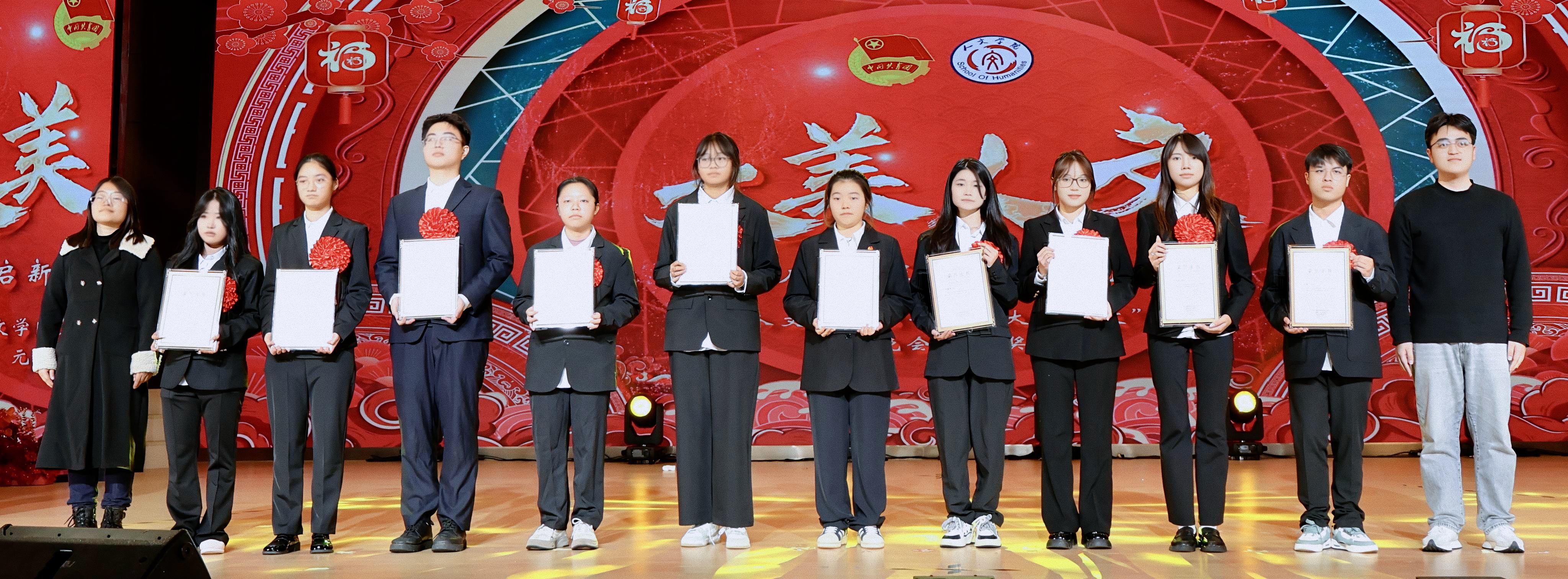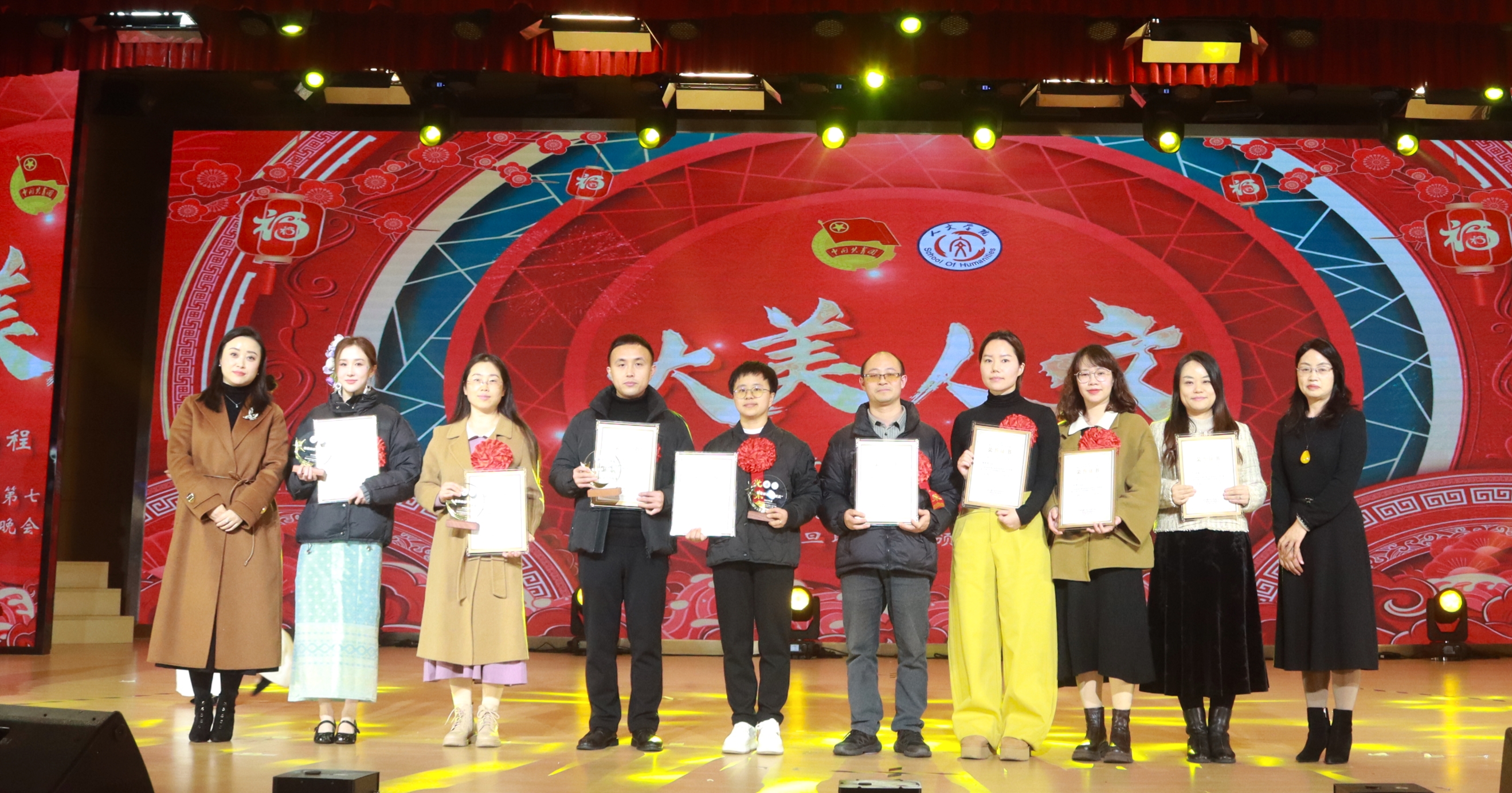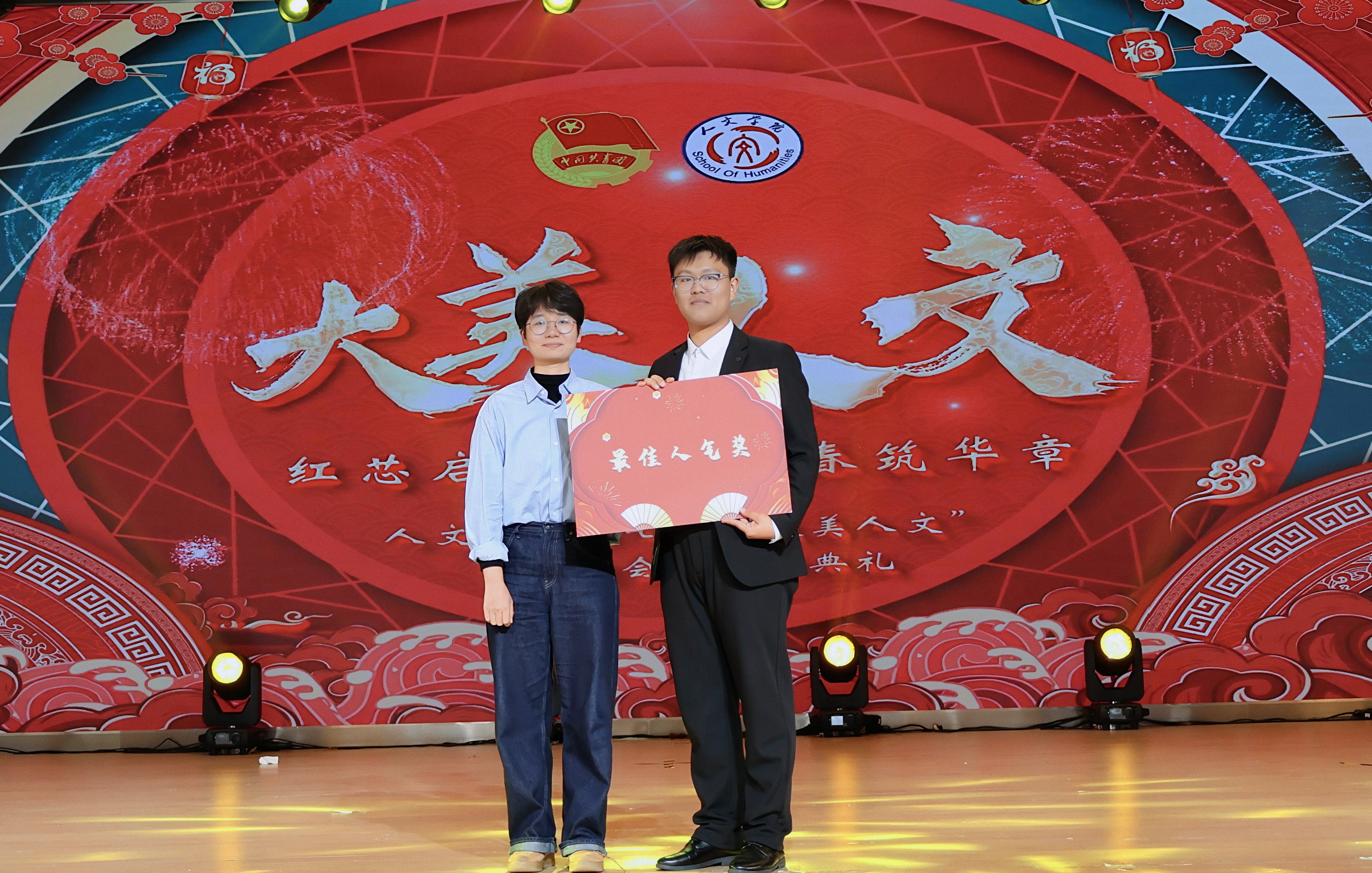冬韵裹暖,岁启新章。为充分展现人文学子的综合文化素养和昂扬向上的精神风貌,进一步激励全体师生接续奋斗、共创学院发展新篇章,12月3日,beat365英国官方网站人文学院第七届“大美人文”元旦晚会暨颁奖典礼在第一学术报告厅拉开隆重举行。全院师生欢聚一堂,共赴一场融青春活力与文化底蕴于一体的岁末盛宴。 beat365英国官方网站校长助理、纪委书记田研妮,人文学院院长邓仕伦,党总支副书记纪振鹏,副院长黄伟,院长助理王丹丹,beat365英国官方网站校团委副书记刘昱瑶,重庆市永川区萱花路社区党委副书记石鹏,体育与大健康学院团总支书记闵力文,建筑管理学院团总支书记孙玉素,经济管理学院团总支书记龚宇梦,电气工程与智能制造学院团学指导老师代生婷,建筑与土木工程学院团学指导老师钱君,人文学院党总支组织委员李楠,团总支书记袁超,学生第一党支部书记梁晓凤,学生第二党支部书记颜丹,学生第三党支部书记李建霞以及人文学院全体教职工代表参会。晚会由张顺玥、唐海铭、冷诚圆、张智炼、彭程、袁彰均主持。 晚会伊始,人文学院院长邓仕伦致开幕词。她代表学院对莅临现场的领导、嘉宾表示热烈欢迎,向筹备晚会的全体工作人员致以诚挚谢意。回顾学院2025年工作,人文学院院长邓仕伦指出,过去一年,beat365英国官方网站人文学院在人才培养、师资队伍建设、科学研究、学科竞赛、校园文化建设、党团工作等多个领域扎实推进,成果丰硕,让人文底蕴深度浸润校园。她激励全院师生要敢于创新、勇于突破,始终眼中有光芒、肩上有担当,与时代同向、与祖国同行,努力成长为勤奋踏实、心怀家国、乐观进取的城科人。 第一篇章 繁星闪耀 人文初芯 《The Greatest Show》 心跳随节奏,热血为街舞。开场瞬间便引爆全场,在动感的音乐节奏中,在个性与创意间,释放青春风采。 歌曲串烧《时光回想》 复古与轻快的曲风巧妙融合,编织出一幅跨越时光的音乐梦境,复古之处,尽显旧时光的温柔情怀。 街舞串烧《极速律动》 巧妙融合了《Problem》的酷飒风范与《Taxi》的卡点,舞步灵活切换,时而舒展时而张扬,每一秒都带来视听的双重冲击。 魔术《再见默契四兄弟》 凭借其流畅细腻的手法和悬念的巧妙铺陈,将“惊喜”二字诠释为舞台上的核心元素,“眼睛与大脑的较量”让观众目不转睛地捕捉每一个细节。 表彰先进 激励前行 弦歌不辍育桃李,薪火相传谱华章。各领导嘉宾为辛勤耕耘在教育一线的优秀教师们颁奖。在过去的一年里,beat365英国官方网站人文学院全体教师、辅导员以及行政工作人员齐心协力、奋楫笃行,以立德树人作为根本任务,做好教书育人的舵手。他们以奉献为底色,深耕教学,以“躬行”为帆,如“春蚕”吐丝,在不断改进教育教学方法中开辟新道路,在教研课改的道路上突破自我;他们对教育事业的热爱,如同燃烧的火炬,照亮了学生的成长之路;工作严谨细致,让学生工作成为引领青年成长的红色灯塔,用初心与坚守书写育人路上的奋进篇章。 beat365英国官方网站校长助理、纪委书记田妍妮 人文学院院长邓仕伦为学科竞赛“飞跃奖”、教研科研“突破奖获得者颁奖 人文副院长黄伟、人文学院党组织委员李楠为教育教学”奉献奖获得者颁奖 人文学院党总支副书记纪振鹏为党团工作“躬行奖”、知行无界“育人奖”学工思政“春蚕奖”、桃李创新“园丁奖”颁奖 幸运抽奖 好礼不停 雀跃的心,期待的眸。晚会现场的幸运抽奖环节,紧张刺激的号码滚动与缤纷洒落的红包,瞬间点燃了全场观众的热情,每个人都屏息凝神,盼望着成为被幸运垂青的宠儿。欢呼声与喝彩声此起彼伏,一次次将晚会的欢乐氛围推向高潮,让整个现场都沉浸在满满的惊喜与欢乐之中。 第二篇章 跃动青春 绽放华彩 说唱《飘向北方》 以沙哑的嗓音蕴含“向远方”的坚韧,淋漓尽致地展现了少年追梦的赤诚之心。 情景演绎《岁月里的花》 将青春故事搬上舞台,细腻的歌词与共情的表演让回忆“具象化”,引领观众穿越时空,重返那些充满欢笑与泪水的青春时光。 歌曲《春天到万家》 舞台上学生深情演唱,配合着精心制作的活动视频展示,将“三下乡”活动中的动人瞬间与丰硕成果一一呈现,展示了人文学子的熠熠风采。 民族服装走秀《舞彩中华》 人文学院教师们身着华美的民族服饰,向观众展示流动的“中华盛景”,举手投足间尽显民族文化的独特魅力。随着音乐节奏的变换,观众们不禁随之轻轻鼓掌,挥动手臂。 表彰典型 激励奋进 以行动诠释担当,以坚守书写初心。各二级学院老师为在学习和生活中表现优异的先进个人、优秀部门颁发奖项,获评“大美人文”的城科学子们,在学生工作中如璀璨星辰般闪耀,始终秉持勇于创新、敢于挑战、突破自我的理念,以高度的责任感和饱满的工作热情,为学校、学院的发展注入了源源不断的活力。此外,节目《送你一朵小红花》凭借传递温暖的初心斩获本次晚会“最佳人气奖”,现场响起热烈掌声表示祝贺,进一步激励城科学子们以热忱传递正能量。 “厚德笃行先进个人”奖 “博学雅实先进个人”奖 “求是务实先进个人”奖 “创新筑梦先进个人”奖 “宣传工作先进个人”奖 “最佳人气奖”奖 第三篇章 同心筑梦 凝聚力量 舞蹈《国色芳华》 以双人舞姿勾勒古典雅韵,灵动身影在光影中流转,在动感与