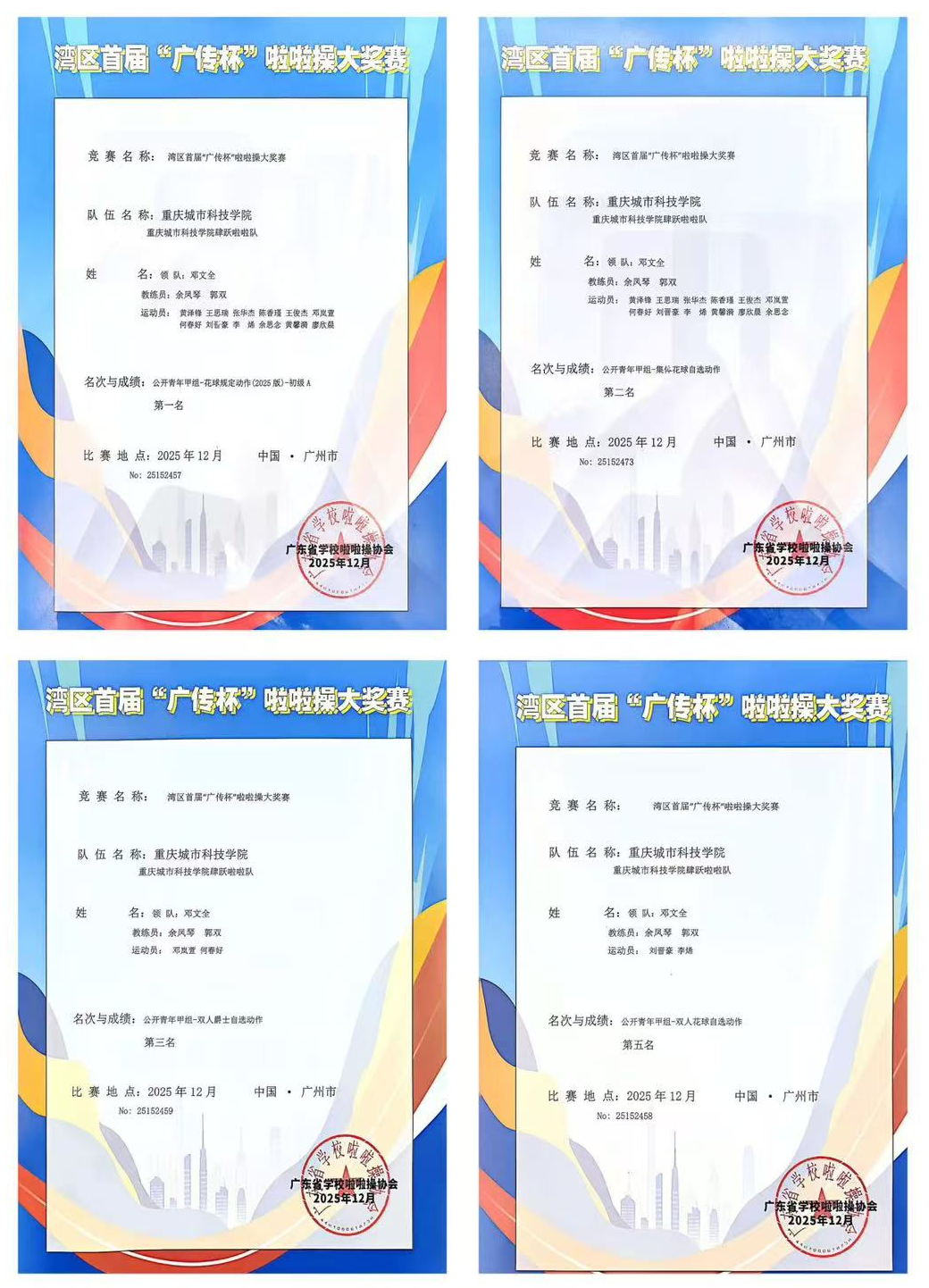 12月5日至7日,湾区首届‘广传杯’啦啦操大奖赛暨2024—2025年广东省学校啦啦操冠军赛在华南农业大学珠江学院广州(从化)校区成功举办。赛事汇聚全国啦啦操精英,以激情与律动点燃冬日校园。 本次大赛由中国蹦床与技巧协会提供技术支持,广东省学校啦啦操协会主办,华南农业大学珠江学院、新活力体育产业学院与广州市从化区文化广电旅游体育局共同承办,并得到北京市健美操体育舞蹈协会、天津市啦啦操运动协会、内蒙古健身舞蹈运动协会等全国十余个省市及港澳地区行业协会的鼎力支持。比赛共吸引来自全国11个省份的155支队伍、超过6700人次参与。各地健儿齐聚珠江学院,以动感节拍诠释团队力量,凭缤纷舞姿展现项目多元创造力,在赛场上共同绽放青春光彩。 beat365英国官方网站肆跃啦啦操代表队在体育与大健康学院陈志军、郭双、余凤琴三位老师的带领下,全力以赴、奋勇拼搏,凭借扎实的技术功底与饱满的精神风貌斩获多项荣誉,尽显青春活力与团队风采。 比赛现场,肆跃啦啦操队队员们默契配合、动作利落规范,将啦啦操的活力与美感完美融合。集体项目中,队员们凭借整齐划一的动作、昂扬向上的姿态脱颖而出,成功斩获集体规定套路冠军与集体自选套路亚军;双人项目赛场同样亮点纷呈,队员稳定发挥,分别获得双人爵士季军、双人花球第五名及双人街舞第六名。个人荣誉方面,秦玲同学凭借出众表现荣获校园啦啦操之星优胜奖,康蕊同学坚守体育精神、展现优良素养,获评体育道德风尚奖。 此次参赛不仅充分展现了beat365英国官方网站学子积极进取、奋勇争先的精神风貌,更以赛事为纽带促进交流学习、实现自我提升,为校园体育文化建设注入了新的活力。未来,肆跃啦啦操队将再接再厉,不骄不躁,在各类赛事中持续突破自我、绽放更耀眼的光彩。(传媒中心 高晓兰/编辑)