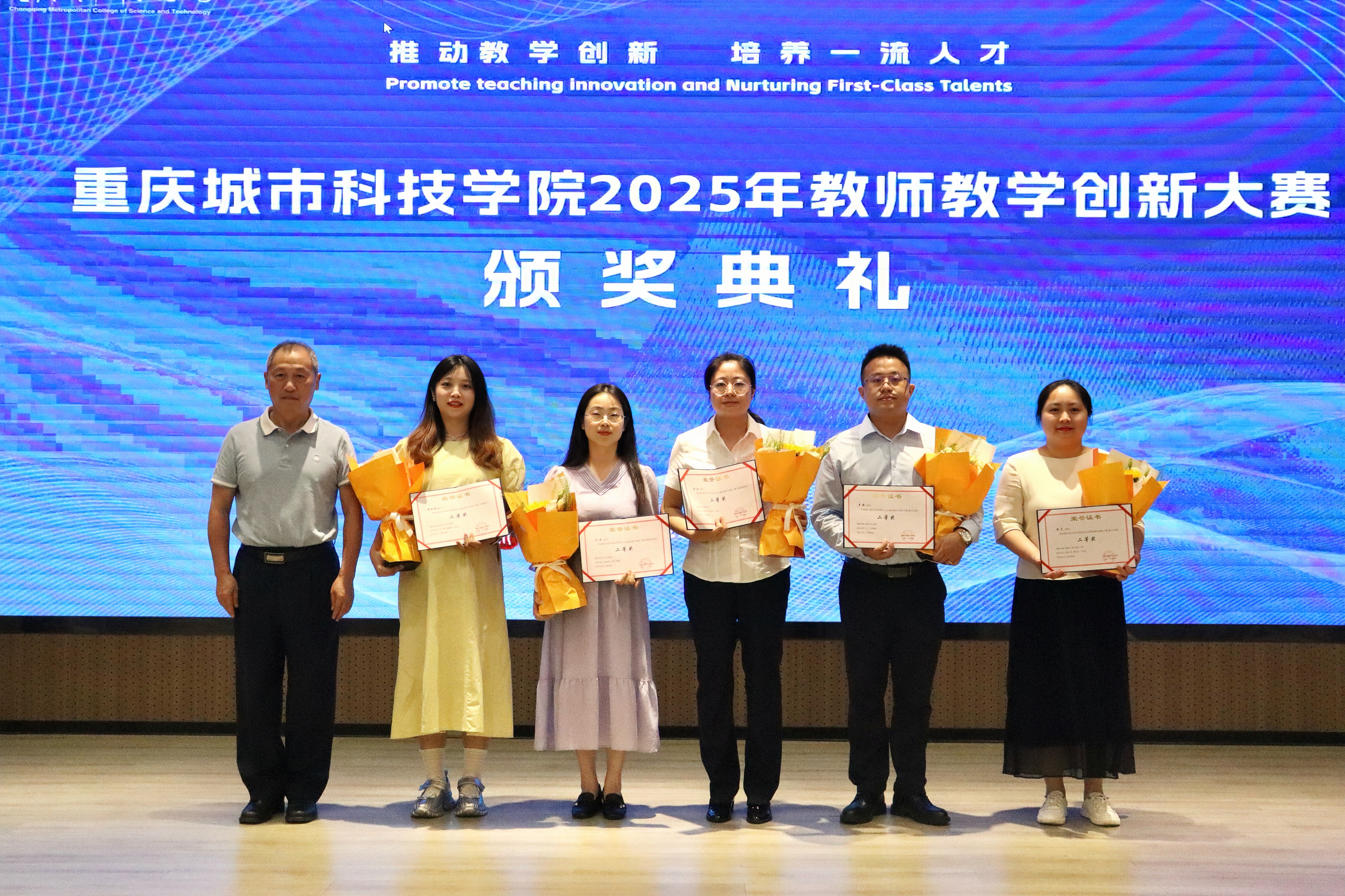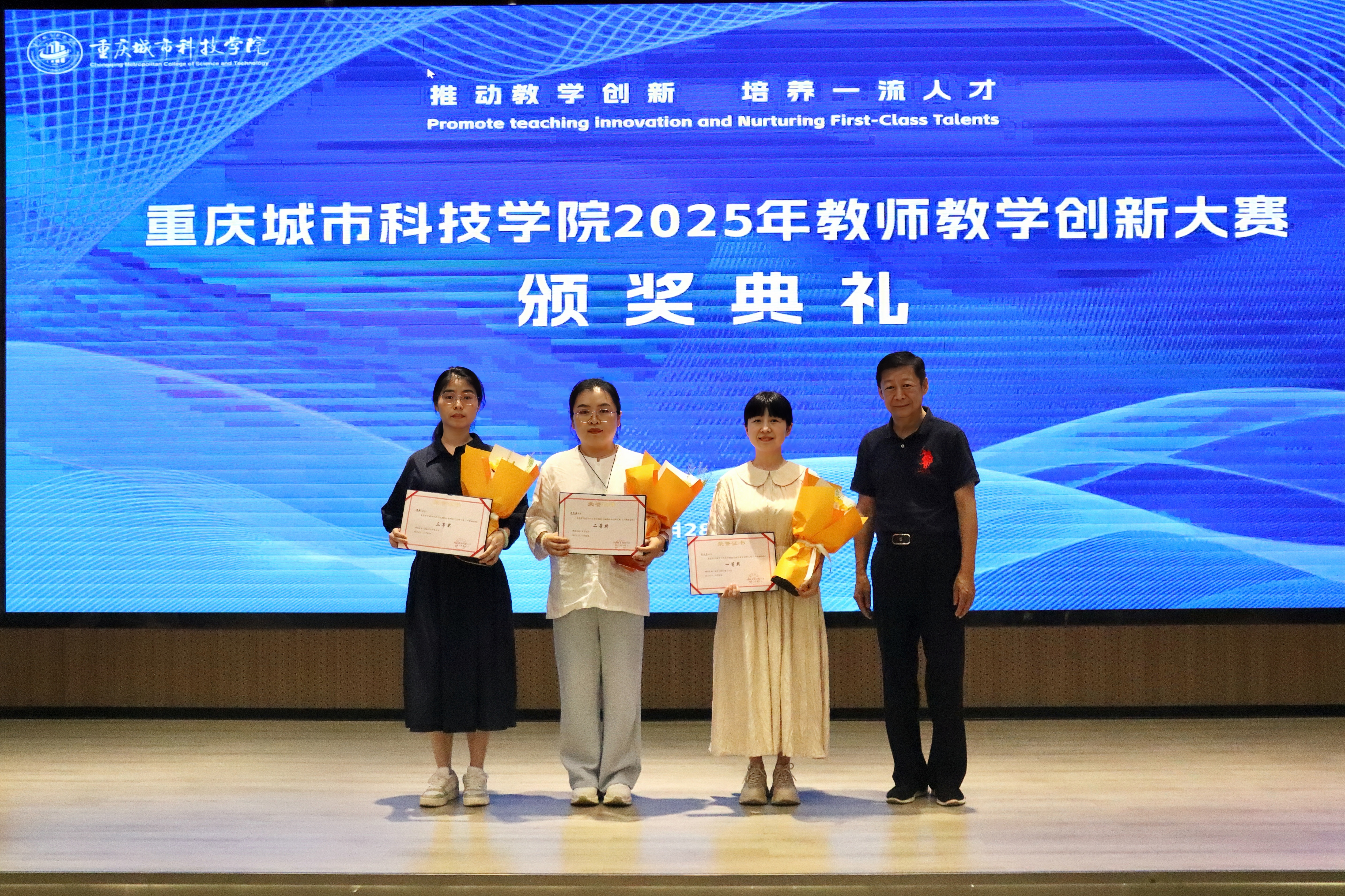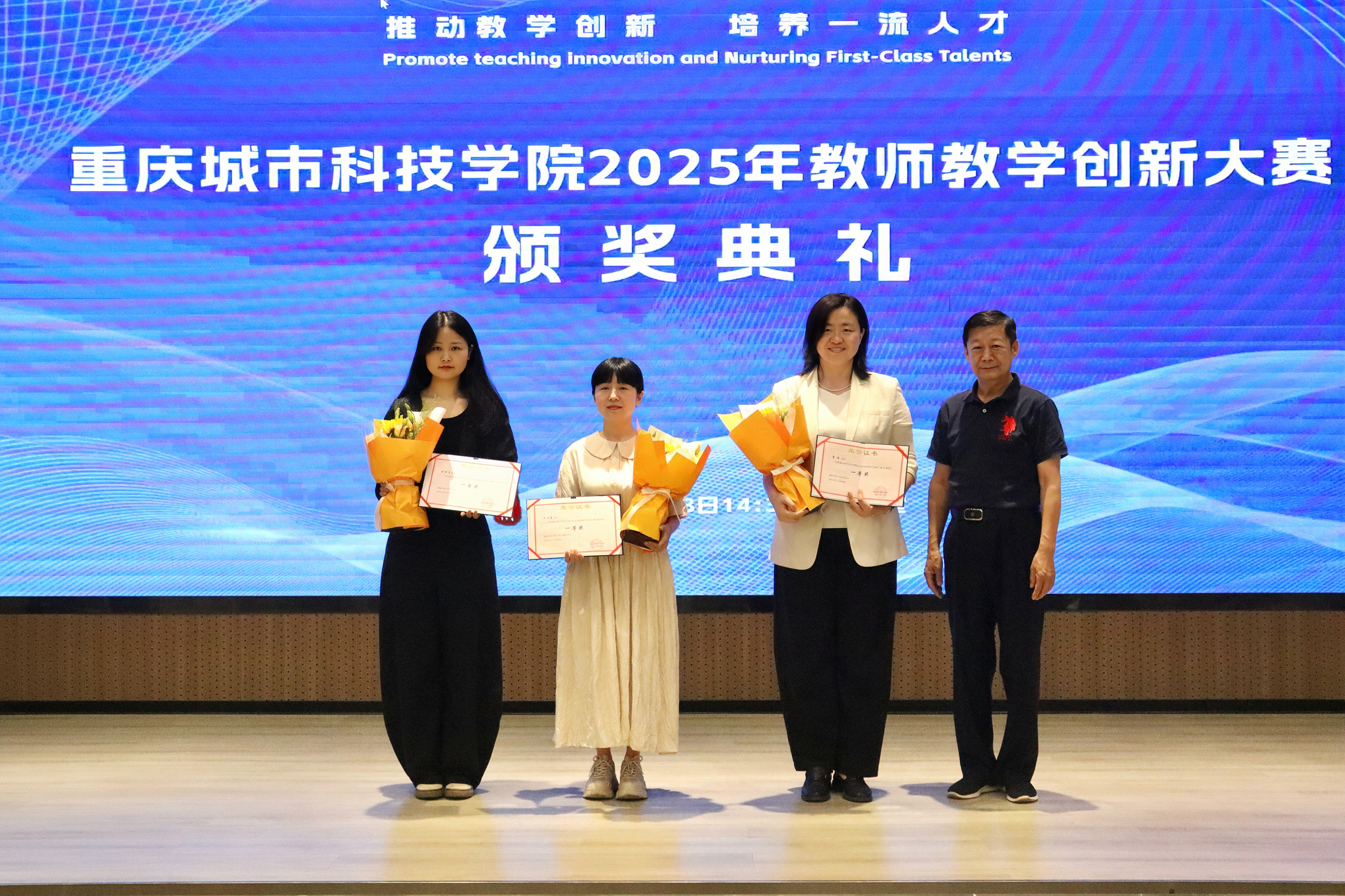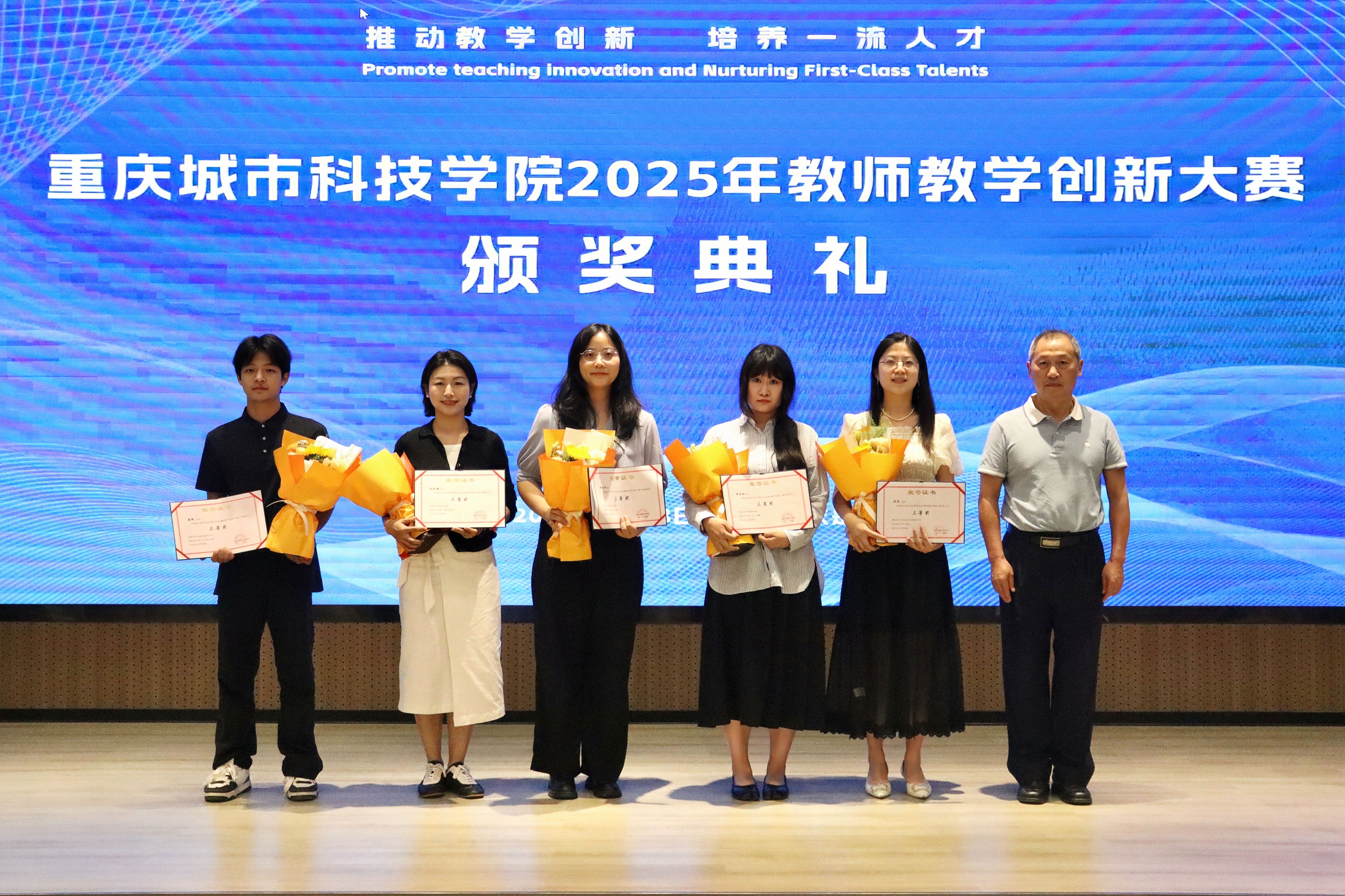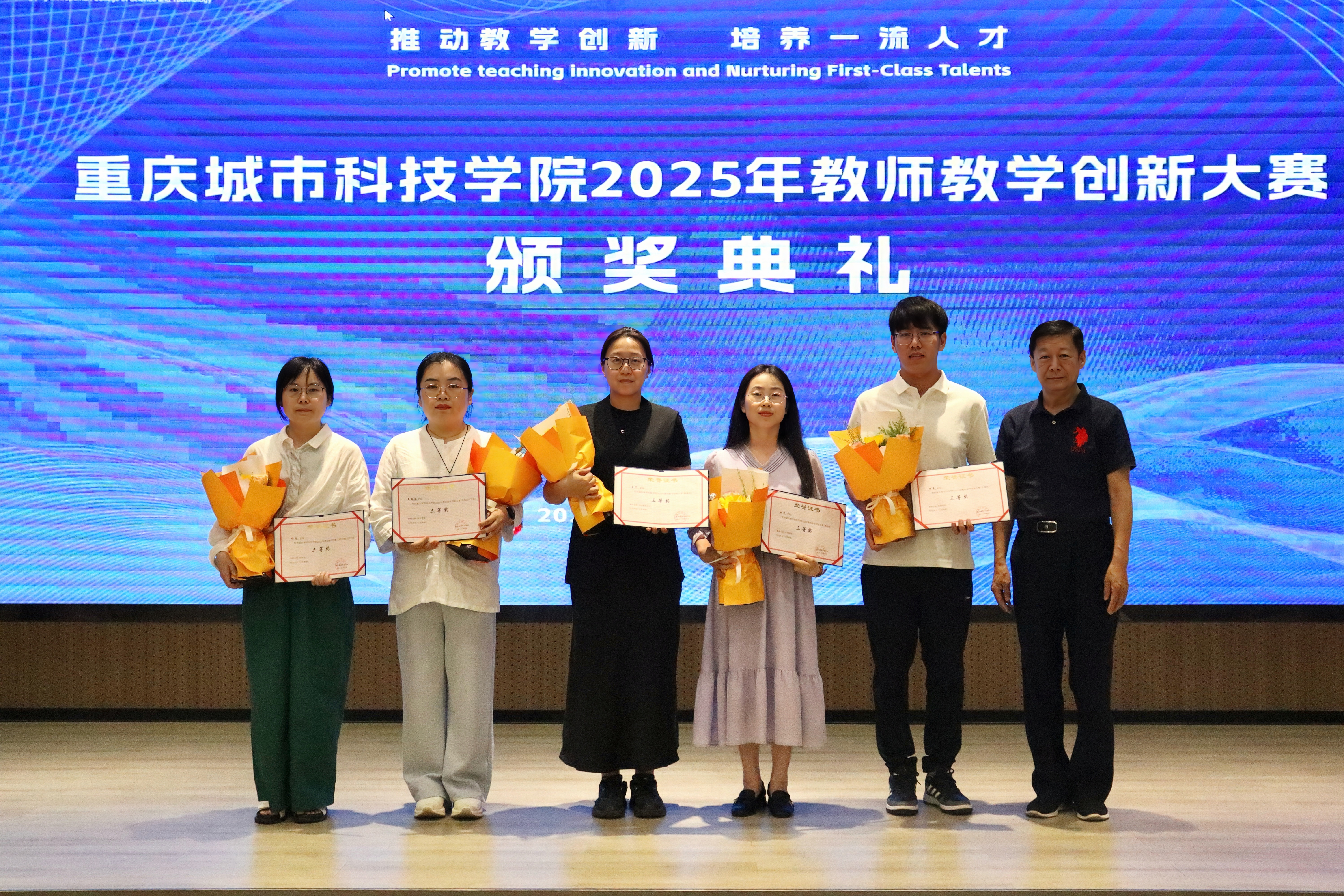 2025年5月28日下午,beat365英国官方网站在求是堂举办了“2025年教师教学创新大赛交流分享会暨颁奖典礼”。校长黄宗明、副校长杜元虎、特邀专家张玲教授、雷佳乐副处长及各二级学院领导、教师代表出席了本次活动。会议由教务处处长王颖主持。 活动伊始,王颖对与会嘉宾表示热烈欢迎,并简要介绍了活动目的和流程。此次活动旨在展示优秀教学成果,分享创新经验,并对获奖教师进行表彰。 在交流分享环节中,五位优秀教师代表依次登台,分享了他们的教学创新实践。人工智能与大数据学院颜烨老师以《算法分析》课程为例,展示了前沿技术与教学的融合;人文学院曾静、陈安琪老师分享了《现代汉语1》“新文科”课程教学创新;电气工程与智能制造学院代鸿教授从《工程数学A》课程出发,探讨了基础课程的教学优化;艺术与传媒学院姚思远老师生动呈现了《普通话语音与播音发声》课程中的思政元素;经济管理学院黄翀老师则通过《管理会计》课程,展现了产教融合的实践成果。五位教师的精彩分享赢得了现场阵阵掌声。 随后,活动进入颁奖环节。杜元虎为2023年教师教学创新大赛及产教融合赛道的获奖教师颁发了奖项,黄宗明则为2025年大赛的获奖教师颁奖。现场气氛热烈,掌声不断。 颁奖结束后,黄宗明校长总结讲话。他首先向获奖教师表示祝贺,并充分肯定了所有参赛教师在教育教学创新中的努力与成果。他鼓励教师们正视差距、保持定力,同时强调学校将持续加大对教学创新的支持力度,包括加强专家指导、完善激励机制、搭建交流平台等。最后,黄校长以“教育的真谛在于持续的进步”与全体教师共勉,号召大家以本次活动为起点,继续深耕教学创新,为学校高质量发展贡献力量。 本次交流分享会暨颁奖典礼在热烈的氛围中圆满结束。活动不仅交流展示了教学创新成果,也为未来的教育教学改革指明了方向,充分展现了beat365英国官方网站教师团队的创新精神与教育热忱。(传媒中心 胡甜甜/编辑)