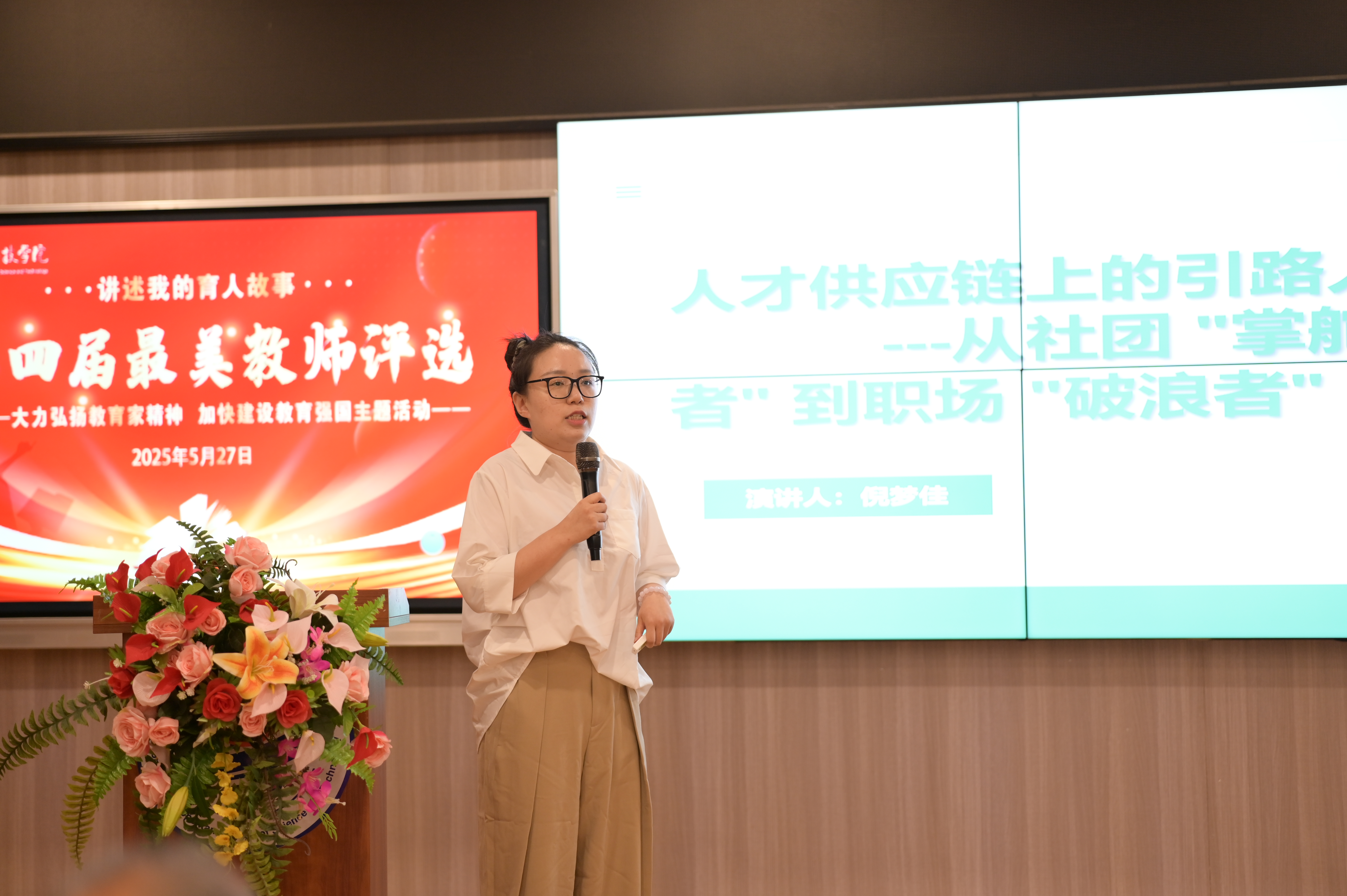 为大力弘扬教育家精神,深入实施教育家精神铸魂强师行动,根据教育部教师工作司、重庆市教育委员会的工作要求,结合学校第四届最美教师评选活动,5月27日晚,beat365英国官方网站在第六教学楼金融仿真中心隆重举办了“讲述我的育人故事”主题演讲活动。来自各二级学院的20名优秀教师代表通过真实感人的教育故事,生动展现了基层教师在教坛上的辛勤耕耘、立德树人的教育初心与使命担当。校领导黄宗明、杜元虎,特邀专家张玲教授,人事处处长刘茜,学生处处长马健,教师代表等80余人参加了活动。活动由教务处处长王颖主持。 活动在庄严而热烈的气氛中正式开始。本次演讲活动遵循真实性和感染力并重的原则,通过生动的事迹来阐释教育的初心。重点讲述了以教育家精神为指导,在教学和育人过程中展现的爱岗敬业、无私奉献以及不断探索和创新育人方法和自我成长的感人故事。评选结果将作为校级"最美教师"评选的关键组成部分,第一名将被推荐至重庆市教委参与市级推选。 参赛教师依次走上讲台,通过5分钟的育人故事分享,深情地叙述了他们在教育生涯中遇到的感人故事。这些故事中,既有帮助学生重拾信心的温馨守护,也有探索教学改革的创新实践,生动地诠释了“一棵树摇动另一棵树”的教育真谛。 副校长杜元虎对参赛教师展现出的精神风貌给予了高度评价,并逐一进行了点评。他表示教师们的分享充分体现了新时代教师以德育人、仁爱为怀的高尚情操以及乐于奉献、脚踏实地的工作态度。学校将继续深化教师队伍的建设,积极推广教育家的精神,努力营造一个尊重教师、重视教育的良好环境,并致力于不断提高教育教学的质量。在结束讲话时,杜校长引用了“三尺讲台,三寸舌,三寸笔,三千桃李;十年树木,十载风,十载雨,十万栋梁”的佳句,以此勉励全体教师。 校长黄宗明在总结讲话中指出,本次活动通过发掘身边的典范,彰显了学校教师坚守讲台、致力于教育的真挚情感,传递了“深耕教育、强国在我”的责任意识。本次活动为全体教师提供了一个展现个人风采的舞台,使得那些生动的育人故事成为全校教师相互学习、相互启发的宝贵资源。他希望全体教师能以此次活动为起点,积极实践教育家的理念,共同打造尊重教师、协同育人的校园文化氛围,为培育肩负民族复兴重任的时代新人贡献更大的力量!(传媒中心 赵志涛/编辑)