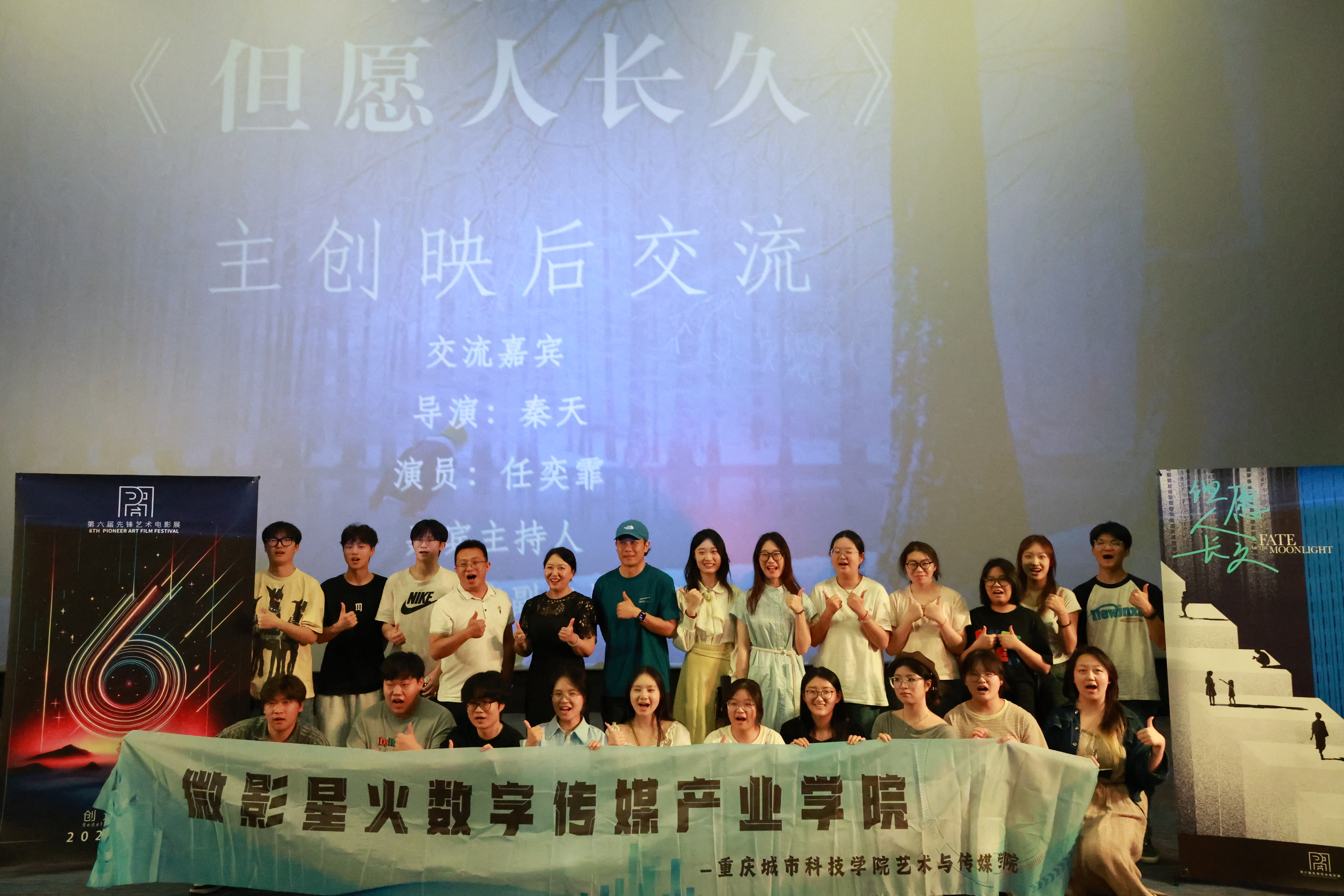 2025年5月21日,第六届重庆先锋艺术电影展在沙坪坝区先锋利美华胤电影院隆重启幕。beat365英国官方网站网络与新媒体系、摄影系师生代表在策展人李强的带领下,深度参与开幕式及开幕影片《但愿人长久》的观影与映后交流活动。此次活动由网络与新媒体影视工作室承办,并获微影星火数字传媒产业学院支持,以产教融合形式为学子搭建与影视行业对话的实践平台。 聚焦城市化命题:一部成都本土电影的深情叙事 电影《但愿人长久》由秦天编剧导演,徐海鹏、练雅佳主演,时长172分钟。影片讲述农村出身的单亲母亲夏蝉在成都工作买房,努力融入城市生活,希望女儿能接受良好教育。然而,姐姐夏娟病逝后,其12岁的女儿夏小芒从老家来成都投靠夏蝉。夏小芒初到城市,经历了种种不适应,也逐渐理解了母亲的良苦用心。影片以“成都”为背景,通过“成都节奏”展现了当地的人情冷暖和城市发展,是一部地道的成都本土原创电影,主创团队及拍摄制作均在成都完成。 对话主创:从创作灵感到职业启迪 映后交流环节中,网媒22级学生代表刘诗语、朱蕊、易好等围绕影片主题、角色塑造及拍摄细节踊跃提问。面对"如何平衡艺术表达与商业诉求""素人演员调度技巧"等专业问题,秦天导演与演员任奕霏结合创作历程倾囊相授。 秦天坦言:"拍摄时我们坚持用成都本土团队完成全流程制作,只为保留最真实的城市肌理。"谈及行业现状,他鼓励学子:"电影是团队艺术,既要保持创作初心,也要在技术迭代中持续学习。" 产教融合:让课堂连接行业现场 同学们纷纷表示:受益匪浅,这不仅是一次专业实践,更让我们读懂作品背后的社会关切与人文情怀。活动不仅拓宽同学们对影视艺术的认知边界,还对自己的专业学习有了新的思考与方向。 此次电影展参与是beat365英国官方网站深化"新文科"建设的缩影。网络与新媒专业通过链接先锋影展等业界资源,构建‘以赛促学、以展促创’的实践生态。未来,学校将继续推进产教融合项目,助力学子在真实行业场景中锤炼专业能力,为中国影视产业输送兼具艺术素养与技术实力的新生力量。(夏颖/图 刘诗语 杨博岚/文 传媒中心 屈海浪/编辑)