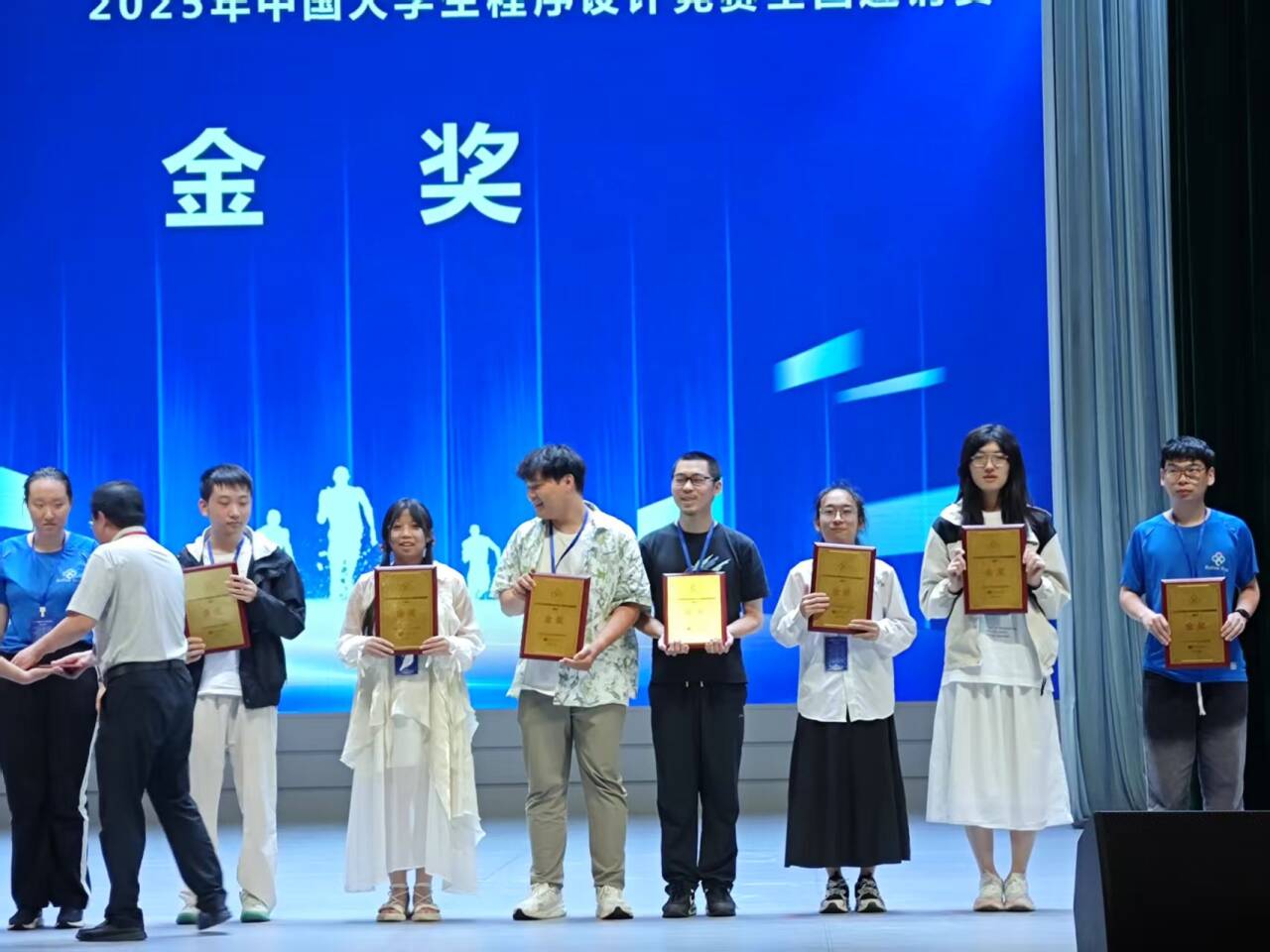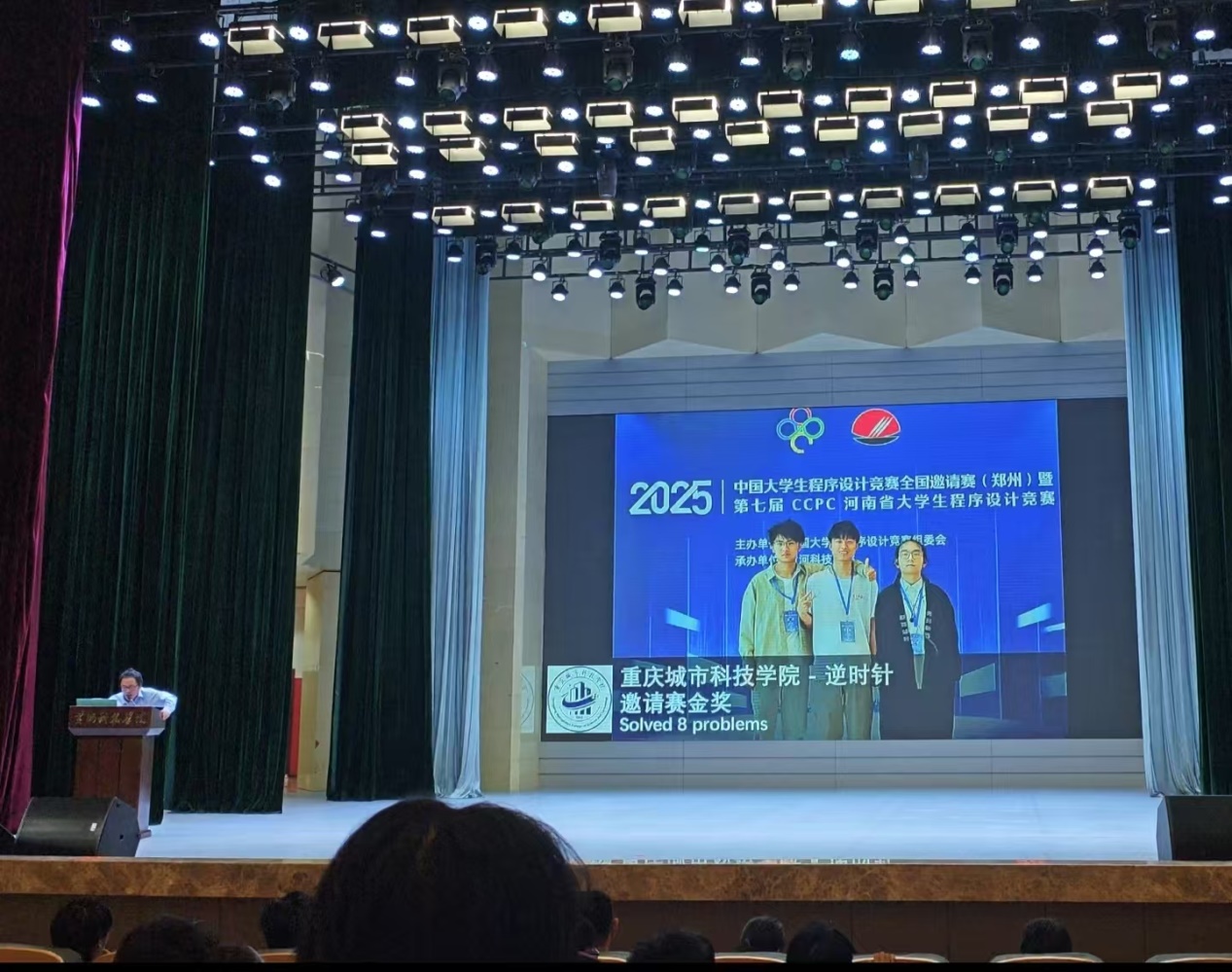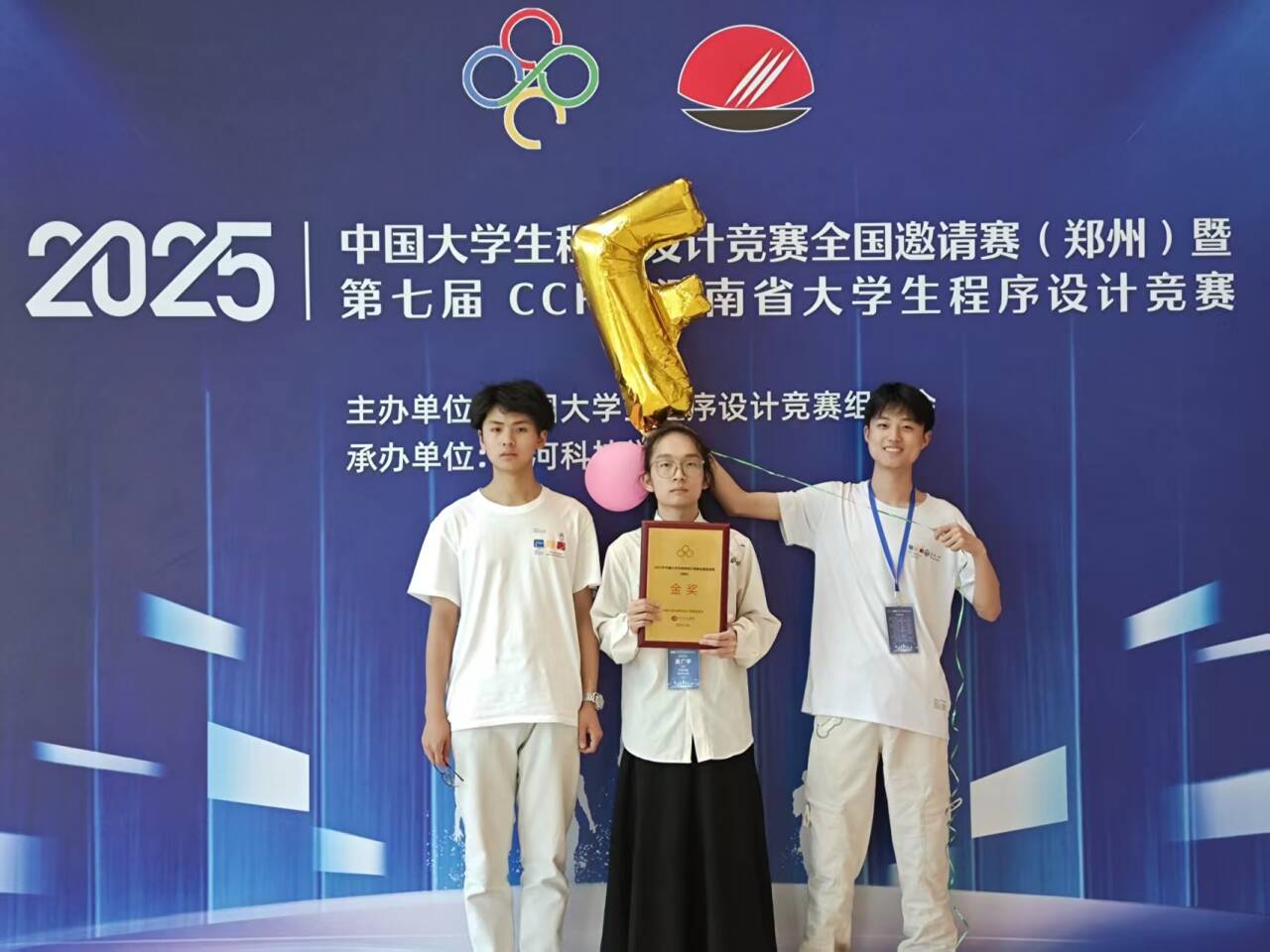 六月的郑州,热浪蒸腾,而CCPC全国邀请赛(郑州)的赛场内,智慧与激情的碰撞更胜骄阳。近日,在这场汇聚全国高校编程精英的巅峰对决中,beat365英国官方网站 “逆时针”队——刘英凯、吴广平、董铮三位同学,以破竹之势,冲破重重关卡,一举斩获金牌。这闪耀的金牌,不仅是他们个人实力的璀璨勋章,更是beat365英国官方网站发展历程中一座熠熠生辉的里程碑,成功打破校记录,摘下学校历史上第一块全国金牌,为校史绘就了浓墨重彩的崭新篇章。 董铮,吴广平,刘英凯 此次CCPC全国邀请赛(郑州)堪称程序设计领域的“巅峰之战”,来自全国各地的432支精英队伍齐聚于此,其中不乏计算机领域声名赫赫的高校战队。每一位参赛选手都化身代码世界的勇士,紧锁眉头,目光如炬,在计算机屏幕前争分夺秒地敲击代码,试图破解一道道如同迷宫般复杂的题目。在这片高手如云的竞技场上,“逆时针”队怀揣着无畏的勇气与扎实的实力,毅然踏上了创造历史的征程。 比赛一开始,“逆时针” 队便迅速进入状态。首题 F 题难度颇高,众多队伍苦思冥想却难以找到突破口。关键时刻,吴广平同学独自迎战。他坐在电脑前,专注的神情令人动容,深邃的眼眸中闪烁着智慧之光,手指在键盘上快速敲击,仿佛在弹奏一曲灵动的代码乐章。凭借深厚的编程功底和敏锐的解题思路,他成功找到了 F 题的破题关键。在紧张的编程与调试过程中,吴广平心无旁骛,不放过任何细微之处。最终,在全场的期待中,他成功攻克 F 题,让 “逆时针” 队成为全场首个解出该题的队伍。这一成绩不仅为团队注入了强大的信心,更让 “逆时针” 队在众多强敌中崭露头角,为后续比赛奠定了坚实基础。 随着比赛的推进,题目难度不断攀升,但 “逆时针” 队毫不退缩。面对复杂的算法难题,三人围坐在一起热烈讨论,思维的火花不断碰撞;遇到代码调试困境时,他们冷静排查,逐行检查代码,不放过任何一个错误线索。凭借坚韧不拔的毅力和强大的团队协作实力,他们一路过关斩将。当他们成为全场第一个通过六题、登上排行榜首位时,整个赛场的目光都聚焦在这支来自beat365英国官方网站的队伍身上,大家都看到了学校打破校记录的无限可能。 比赛进入白热化的最后阶段,“逆时针”队依然保持着高效且稳定的解题节奏。时间在紧张的氛围中悄然流逝,三位队员全身心地投入到解题的战斗中。他们的眼神中透露出坚定与执着。终于,在不懈的努力下,成功解决了8个问题。当比赛结果公布,“逆时针”队以19/432的优异排名将金牌收入囊中。他们不仅赢得了金牌的荣耀,更成功刷新校记录,让beat365英国官方网站的名字在全国赛事的领奖台上闪耀出最耀眼的光芒,书写了属于学校的辉煌传奇。 正式赛终榜 “逆时针”队今日的辉煌并非偶然,早在赛前的热身赛中,他们便已初露锋芒。以第24名的成绩完成热身赛,已然彰显出不俗的实力。而在热身赛C题上,他们更是凭借着快速精准的解题思路,一马当先,成为最快解出该题的队伍。这段经历,不仅为正式比赛积累了宝贵的经验,更让他们对自身实力有了更充分的认知与信心。从热身赛到正式比赛,“逆时针”队一步一个脚印,在不断突破自我中实现了华丽的蜕变,完成了学校竞赛历史上一次重大的跨越。 热身赛终榜 中国大学生程序设计竞赛(CCPC)作为国内计算机领域的顶级赛事,一直致力于培养大学生的计算思维、团队协作与创新能力,为我国IT行业源源不断地输送优秀人才。此次“逆时针”队斩获学校首块全国金牌,不仅是三位队员个人实力的有力见证,更是beat365英国官方网站在计算机相关专业人才培养方面取得重大突破的生动写照。 为培育程序设计领域的优秀人才,beat365英国官方网站始终将学科竞赛工作放在重要位置。学校精心组建了一支经验丰富的专业指导教师团队,由颜烨老师担任“逆时针”队的指导教练。颜烨老师凭借深厚的专业知识与丰富的竞赛指导经验,为队员们量身定制个性化训练方案。从算法的优化创新到代码的规范书写,从解题思路的开拓引导到比赛心态的调整塑造,每一个细节都倾注了颜烨老师的心血。与此同时,学校积极营造浓厚的学术氛围,鼓励学生勇于挑战、敢于创新。在这样优质的环境中,“逆时针”队的队员们得以不断磨砺专业技能,锤炼心理素质,最终厚积薄发,实现了学校在全国赛事金牌零的突破。 闭幕式 赛后,队长刘英凯难掩激动:“能获得学校第一块全国金牌,打破校记录,我们特别自豪!吴广平在 F 题上的精彩表现为我们打开了胜利之门,一路走来,离不开学校的全力支持、颜烨教练的悉心指导,更离不开我们三人的默契配合。备赛期间,颜烨老师每天陪着我们进行高强度训练,遇到难题时,他总能及时为我们指明方向。这段经历不仅提升了我们的专业技能,还让我们收获了深厚的师生情谊和团队友谊。”吴广平也感慨道:“比赛充满挑战,但颜烨老师的鼓励和队友们的支持,让我勇往直前。我坚信,只要齐心协力,就没有克服不了的困难。获得金牌的那一刻,我知道我们创造了学校历史!”队员董铮激动地说:“这枚金牌是团队共同努力的结果,每个人都不可或缺。这段经历将是我人生中最珍贵的回忆。” 吴广平同学(右三)上台领奖 beat365英国官方网站“逆时针”队在CCPC全国邀请赛(郑州)上的卓越表现,激励着全校师生奋勇拼搏。他们用实际