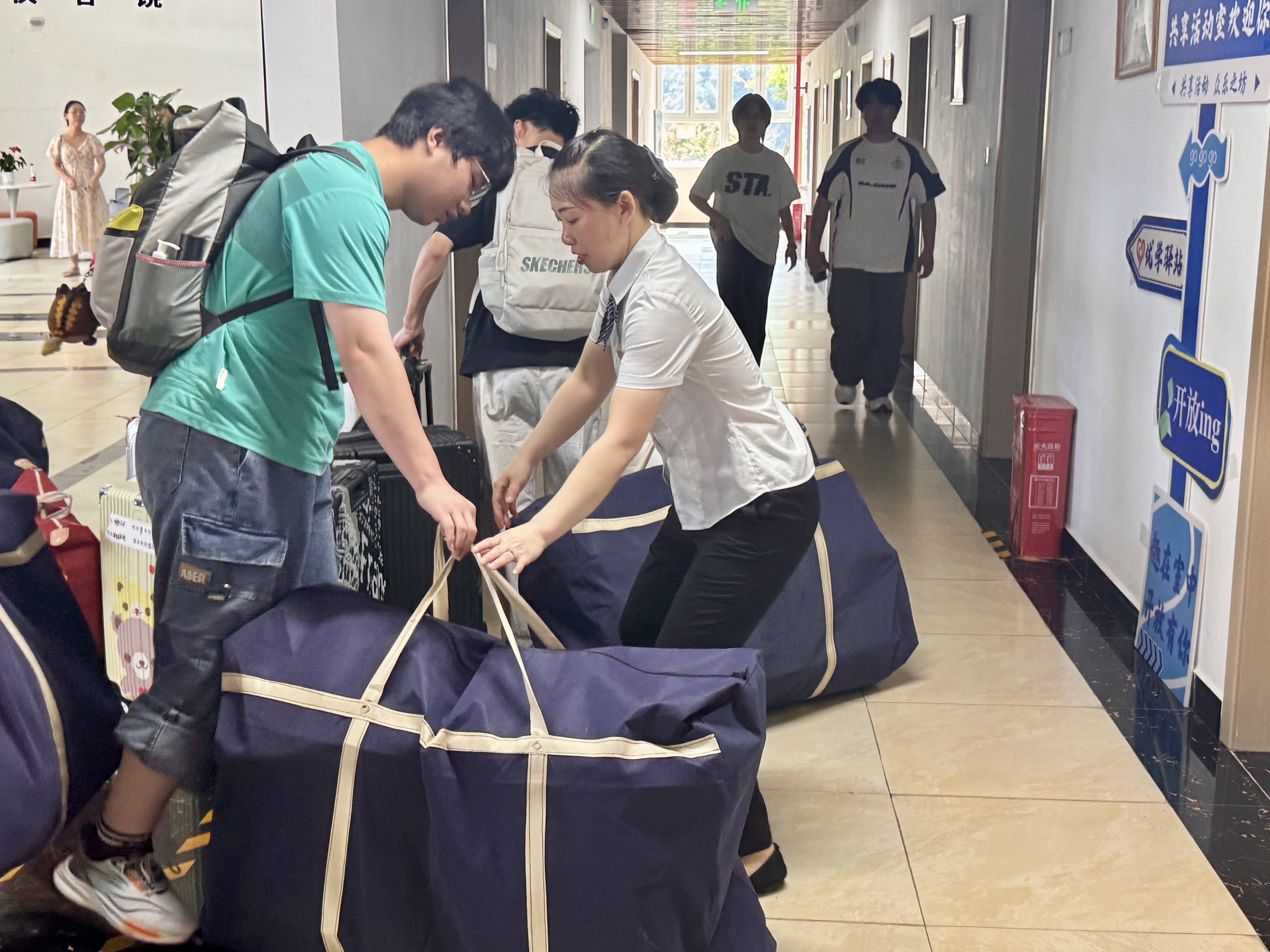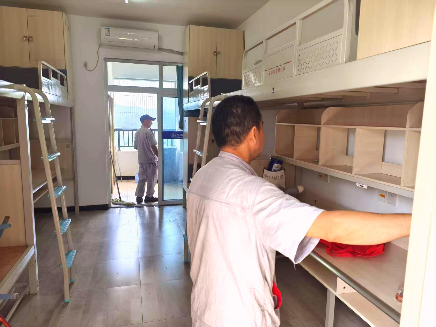6月27日,2024级人工智能与大数据学院的1245名大一学生从永川校区迁往巴南校区。这是一场凝聚着无数心血、多方紧密协作的“温暖战役”,后保人倾尽全力,为学生铺就温情顺畅的搬迁之路,奏响服务育人乐章。 保洁人员以高度责任感对宿舍展开全方位深度清洁。从地面到天花板、床铺缝隙到卫生间角落,不放过任何卫生死角,废弃杂物也严格按标准分类处理,确保宿舍整洁有序。学生步入宿舍,温馨氛围扑面而来,消解陌生紧张感,感受如家般的安心。 以匠心精神,筑安全堡垒 维修人员全面细致检修翻新每间宿舍。面对老化电线,及时更换以筑牢用电安全防线;针对松动插座,精心加固保障细节安全。同时修补、翻新墙面与地面,让宿舍焕新。他们凭借专业技能与工匠精神,以匠心为学生筑牢安全堡垒,助力学子在新宿舍安心学习生活。 以贴心服务,解学子之忧 楼宇人员提前备好宿舍钥匙与空调遥控器,对每间宿舍详细登记编号,确保物品精准发放。搬迁时,她们坚守岗位,热情相助,耐心引导学生找到宿舍,让学子在陌生环境中感受到家一般的关怀。她们以真诚服务编织爱与温暖的网,驱散学生初入新环境的孤单无助。 以责任担当,护校园秩序 安保队伍肩负维护校园交通秩序与学生安全的重任,于校园内设置醒目交通指示标志,引导大巴车依规行驶,保障交通秩序井然。学生下车时,他们现场指挥调度,全力护航学生与行李安全,以强烈的责任与担当,为学生营造安全、和谐的校园环境。 这场校区搬迁,恰似学校“服务育人”乐章里一段灵动的旋律,后保人以无声的付出与热忱,为学生搭建起温暖的逐梦桥梁。教育是一场温暖的修行,学校深知责任在肩,未来定会以爱为帆、以责为桨,助力学生在青春长河中破浪前行,让育人之光温柔照亮他们成长的每一程。(传媒中心 王庆莲/编辑)