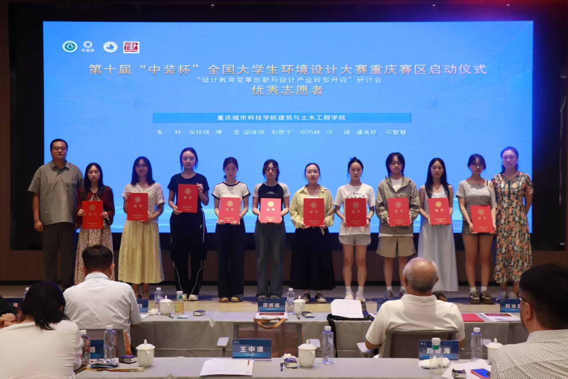 2025年6月22日(周日),第十一届“中装杯”全国大学生环境设计大赛-重庆赛区启动仪式暨设计教育变革创新与设计产业转型升级研讨会在beat365英国官方网站(永川校区)建筑与土木工程学院求是堂报告厅举行。 (合影) 本次研讨会由中国建筑装饰协会主办,中国建筑装饰协会学术与教育专业委员会、beat365英国官方网站建筑与土木工程学院、鲁班智能建造产业学院承办,重庆市建筑装饰协会、重庆大学、重庆交通大学、重庆外语外事学院、重庆艺术工程职业学院、重庆工商职业学院协办,贵州省装饰设计行业协会、中冶建工集团有限公司、重庆大学建筑规划设计研究总院有限公司、重庆设计集团港庆建设有限公司、重庆海岸线广告有限公司等单位支持。 (会议现场) 开幕式由赵万民教授主持,beat365英国官方网站纪委书记、校长助理田妍妮致辞,她希望重庆赛区学子能在赛事中尽情展现实力与风采,也期待各位专家、学者为青年学子成长指引方向。 (田妍妮女士) (赵万民教授) 重庆市建筑装饰协会会长刘冰野致辞提到,大赛赛题持续创新升级,紧扣社会、经济及行业热点,以实际项目为赛题内容,聚焦行业新方向,挖掘专业新潜能,擎起行业新未来,已成为链接设计教育与产业需求的“核心桥梁”。 (刘冰野会长) (王肖巍副教授主持主题报告) 中国建筑装饰协会学术与教育专业委员会秘书长朱时均作主题报告,围绕建筑装饰产业转型升级及高校设计教育问题,阐述“中装杯”整合资源的举措,包括课题研究、学术支持、AI应用等。 (朱时均秘书长) 重庆大学教授、博士生导师,建筑城规学院风景园林系主任毛华松作主题报告,从中国山水风景文化展开,探讨其历史发展、文化内涵、中西差异,梳理保护历程,指出当前问题,强调古人智慧。 (毛华松教授) 重庆艺术工程职业学院建筑科技学院教授、副院长尹竣作主题报告,探讨了建筑专业人才培养转型,涉及行业趋势、新经济引擎等,阐述了调研背景、目的、范围及时代背景。 (尹竣教授) 颁奖环节由杨龙龙副教授主持,在场的专家学者为“中装杯”全国大学生环境设计大赛获奖的师生以及志愿者颁发奖状与证书,同时勉励同学们继续前行、再创辉煌。 (杨龙龙副教授) (颁奖) 特邀嘉宾: 参会领导: 来源 建筑与土木工程学院 (梁丹彤/编辑)