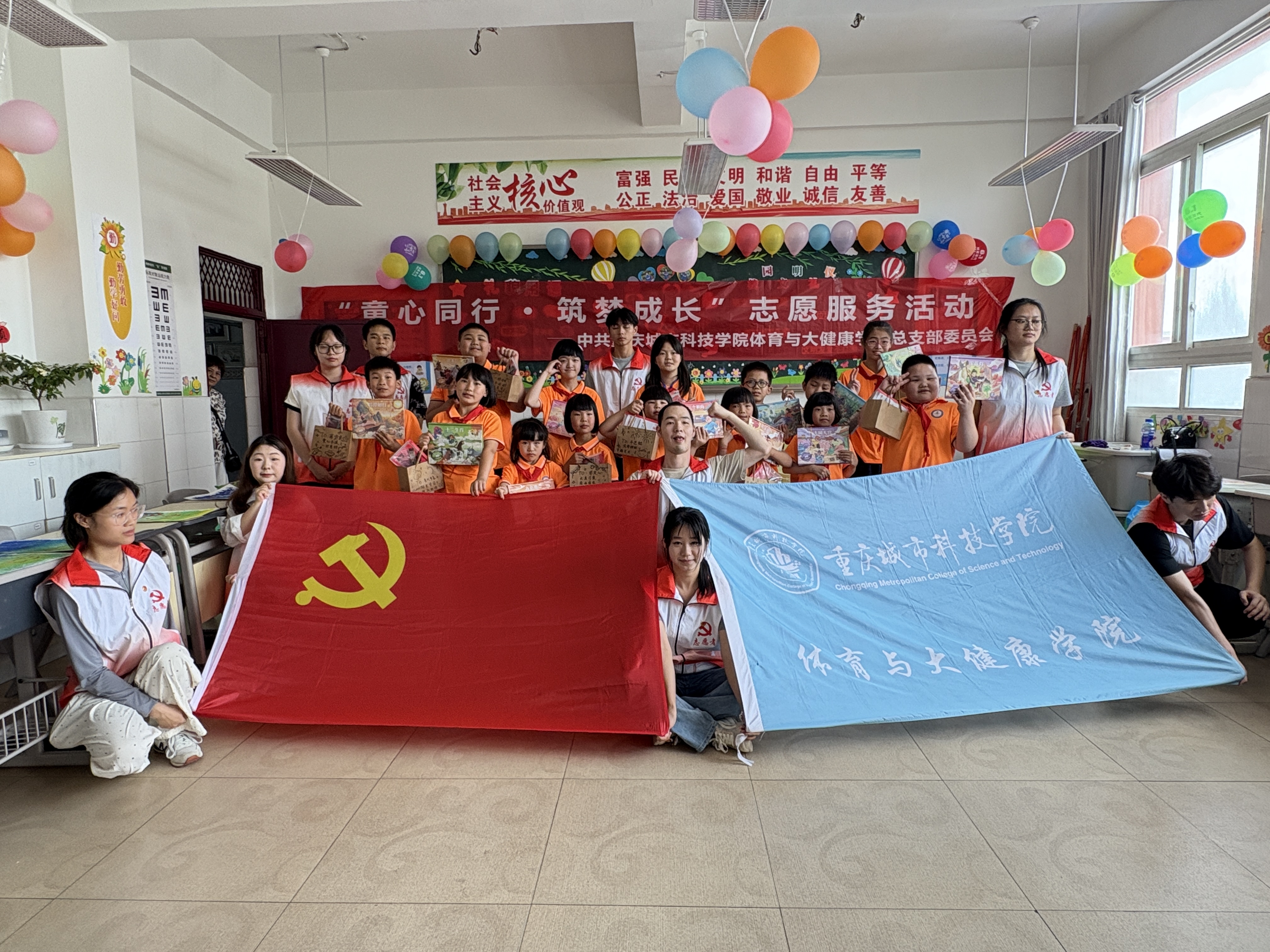 体育与大健康学院党组织“萤火之光”志愿服务队前往重庆市永川区特殊教育学校开展“童心同行·筑梦成长”主题志愿服务活动,体育与大健康学院党总支“萤火之光”志愿服务队的志愿者们为永川区特殊教育学校的孩子们带来的精彩舞狮表演瞬间点燃现场气氛。