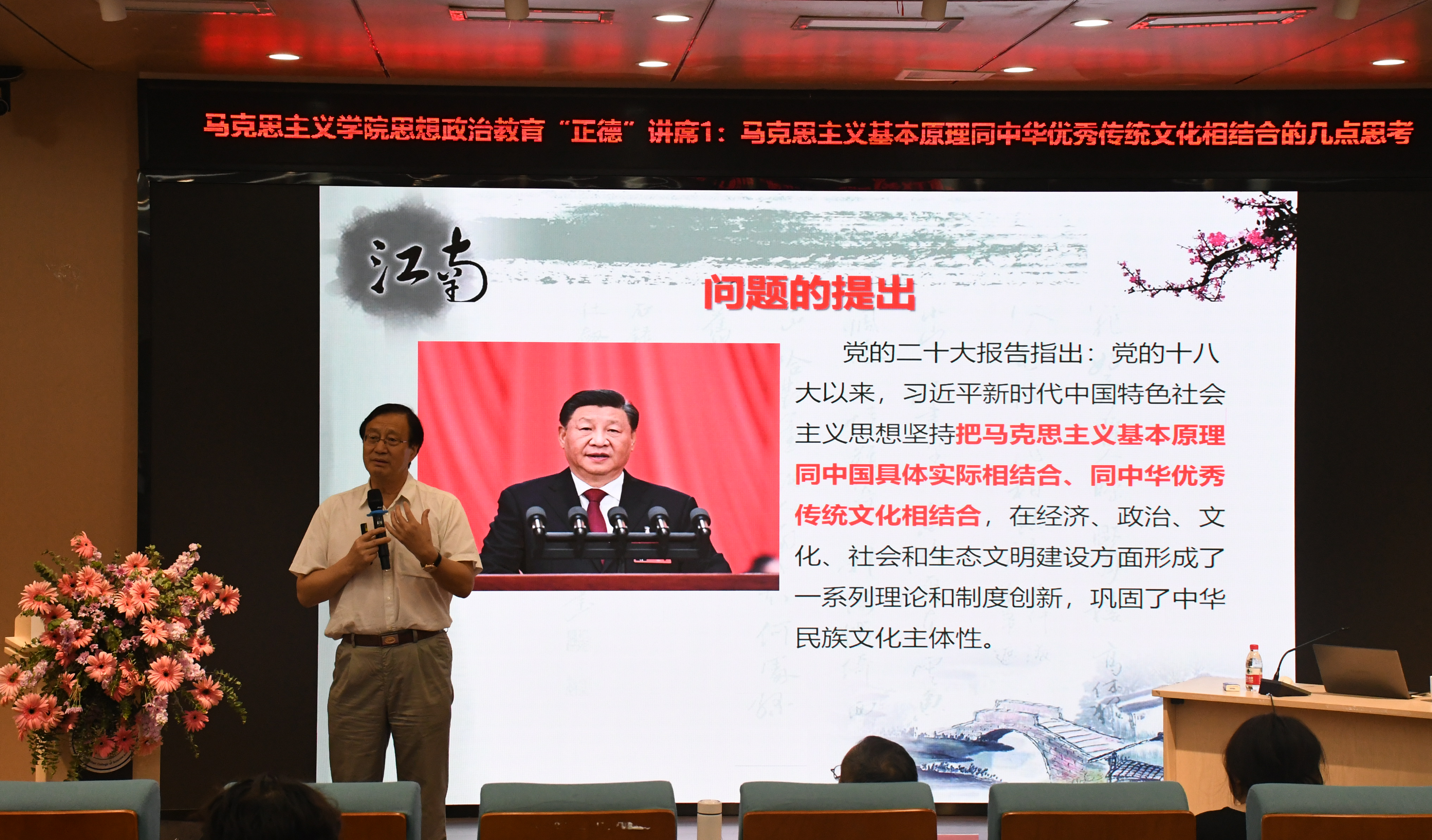 马克思主义学院在学校第二报告厅开办思想政治教育“正德”讲席,受邀担任正德讲席的开讲嘉宾是首届全国思想政治理论课教师标兵人物、全国首届思想政治理论课最美教师、原四川大学教授、锦江学院马克思主义学院院长阎钢教授。