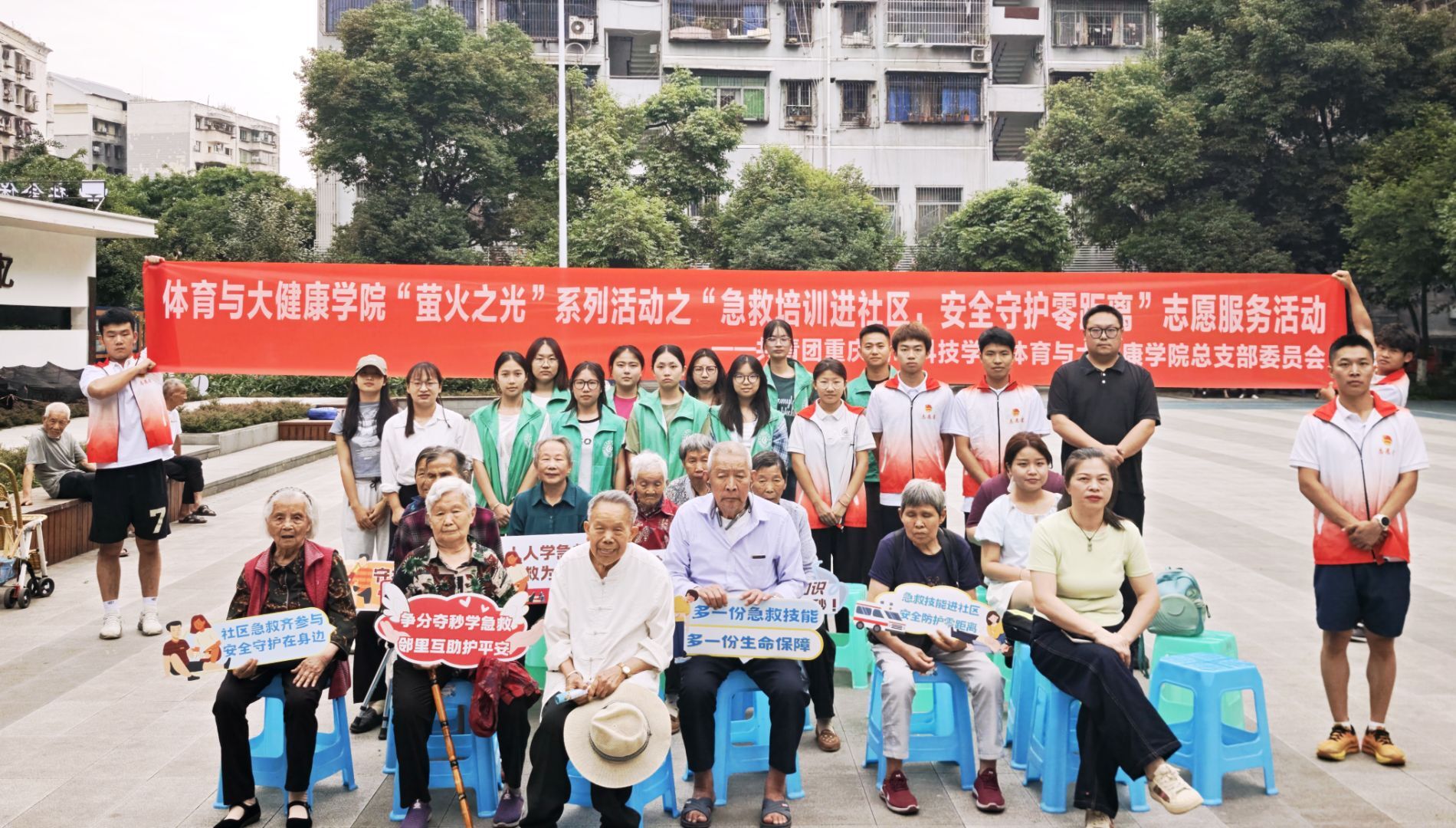 beat365英国官方网站体育与大健康学院联合建筑管理学院走进永川区萱花路社区,通过“健康筛查+技能实训”双轨服务模式提升居民自救互救能力。