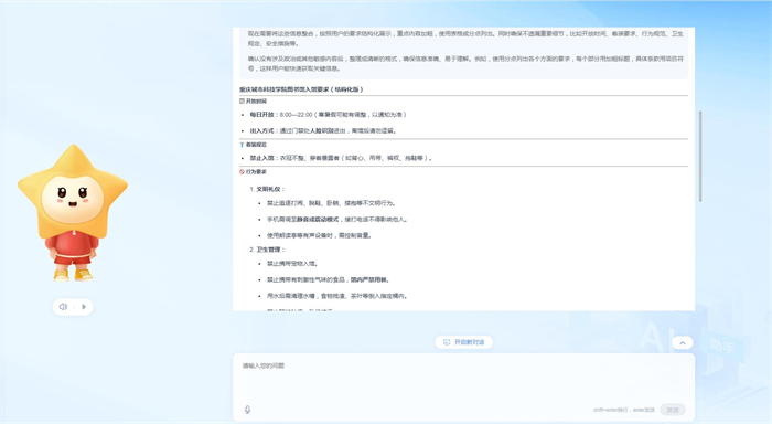 当前,AI能力中心正处深度进化阶段,现面向全校师生发出诚挚邀请,加入这场意义非凡的训练之旅,为AI智能体注入源源不断的智慧与活力。我们期待与每一位师生共同打磨更懂需求、更暖人心的智能服务,让AI能力中心逐步成长为校园中不可或缺的智慧伙伴,为校园数智未来添上浓墨重彩的一笔,书写出属于全体师生的智慧华章。
