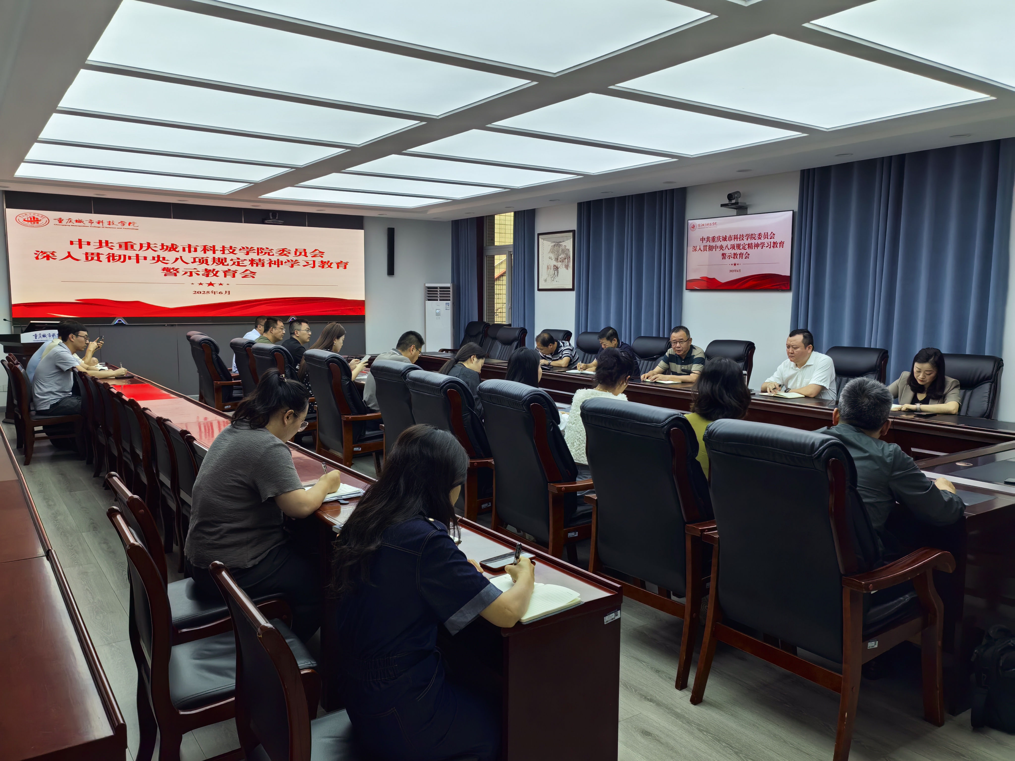 为深入贯彻落实中央八项规定精神,持续加强和改进工作作风,筑牢防腐拒变思想防线,6月6日,学校在第一行政楼101会议室召开警示教育会议。 会议通报了违反中央八项规定精神典型案例。通过对违规吃喝真实案例的剖析,让广大党员干部直观感受违规吃喝、公款吃喝等腐败行为对党和国家事业、个人家庭造成的严重危害,从而更好的引领广大校党员干部知敬畏、存戒惧、守底线。 会议要求,全体党员、干部从案例中汲取教训,举一反三,警钟长鸣。各级党组织要把开展深入贯彻中央八项规定精神学习教育作为党的建设重要工作,坚持学查改一体推进,严肃查处顶风违纪、隐形变异的“四风”问题,把作风建设融入日常、抓在经常、落在平常,营造风清气正的政治生态,在推动学校内涵式高质量发展。(传媒中心 胡甜甜/编辑)
