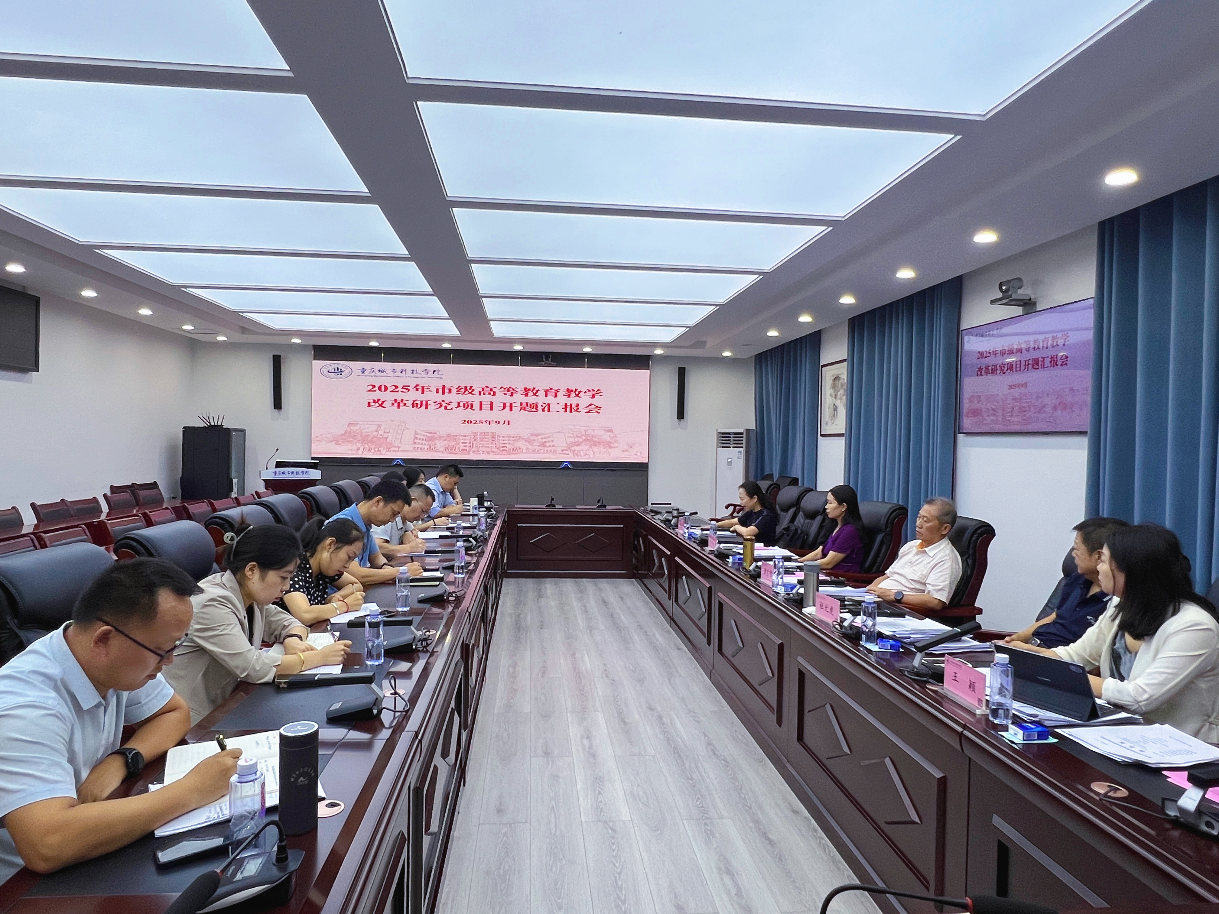 beat365英国官方网站在第一行政楼101会议室隆重举行了2025年重庆市高等教育教学改革研究项目开题汇报会,校长黄宗明、副校长杜元虎、西南政法大学贺艳教授、特聘专家张玲教授以及各项目负责人共同出席。